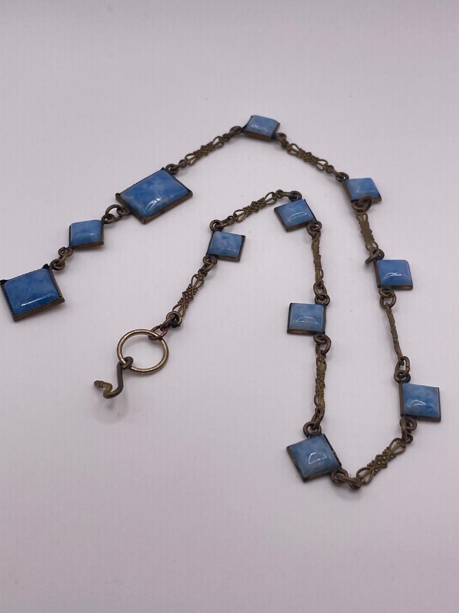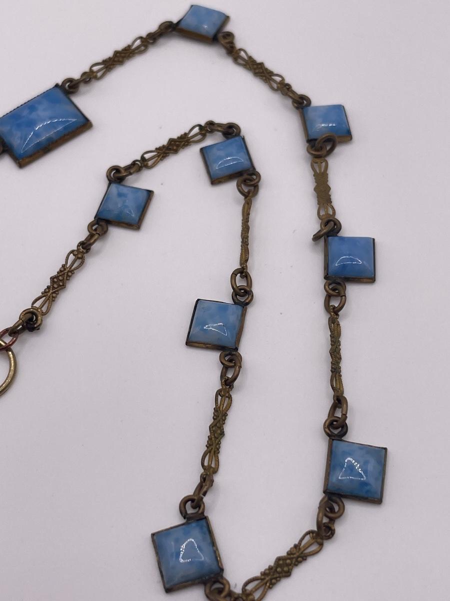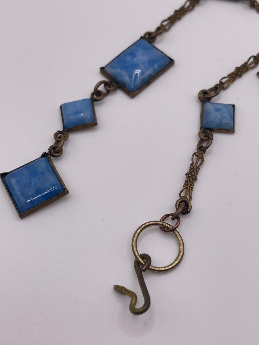 1920s art deco Czech blue glass & brass