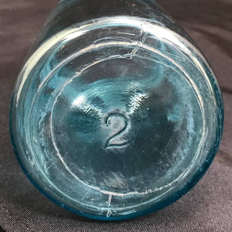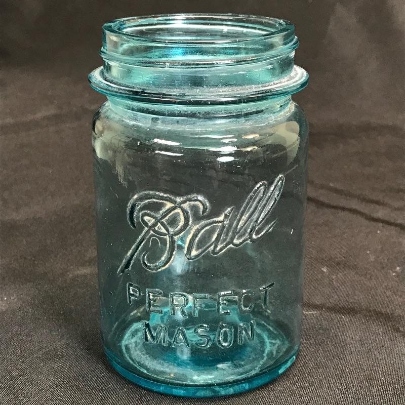 Up for auction is a 1920s ball blueglass mason jar. It stands 5.5“ high, and the diameter of the opening is 2.5“.