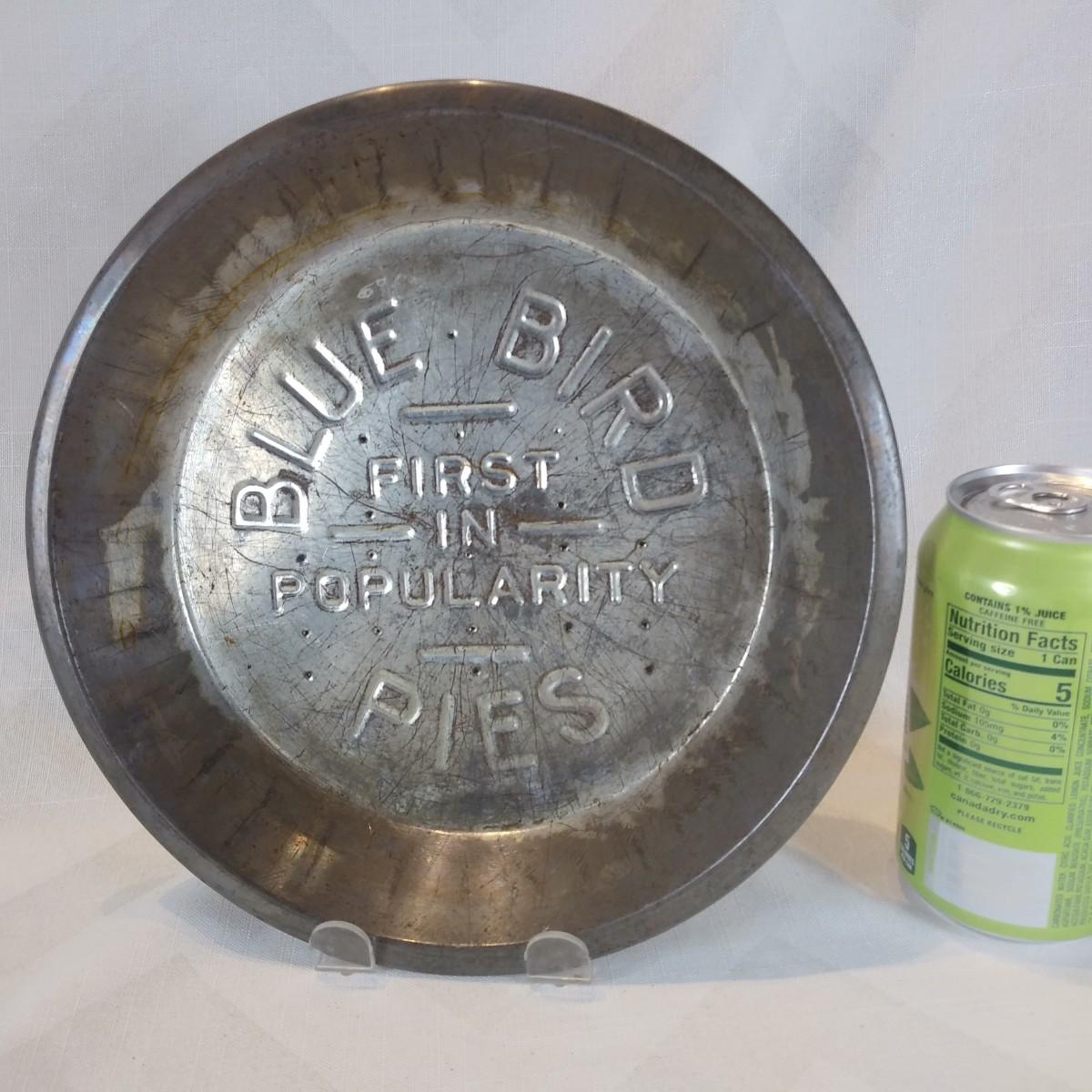 This auction lot is for a Vintage Blue Bird Pie Tin. Straight from the 1920's. This one is in very nice condition and could be used as is to make a pie or for a display - or both. It is 9.5 inches in diameter.