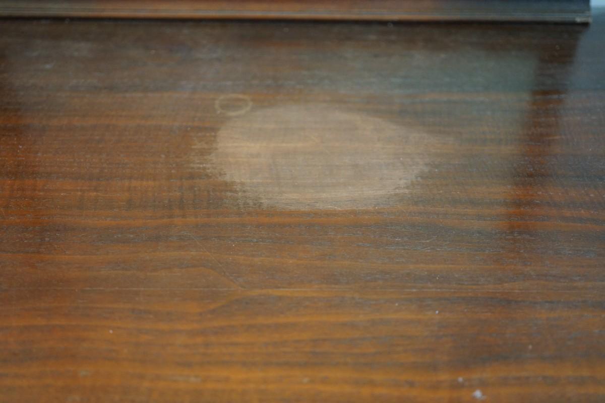 Condition: water mark on the top. you could refinish top or just use dresser scarf. the medallion does have a crack. see photos. otherwise the mirror is good and the rest just has minor scratches with age.