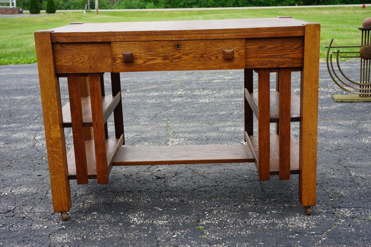 1920's QUARTER SAWN OAK ARTS AND CRAFTS STYLE DESK