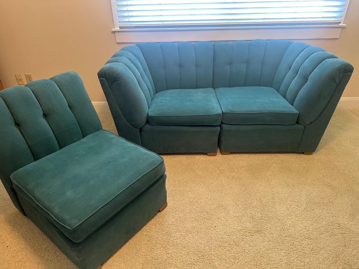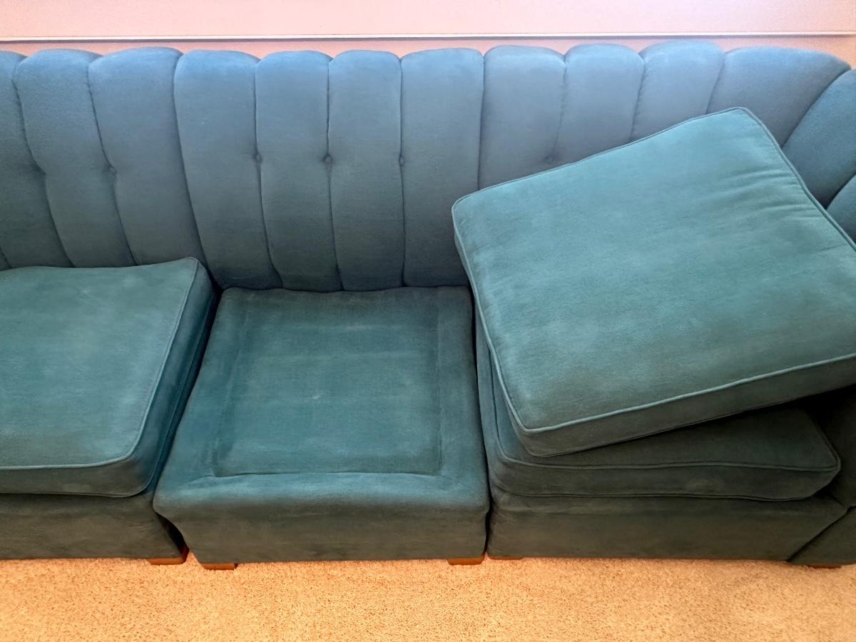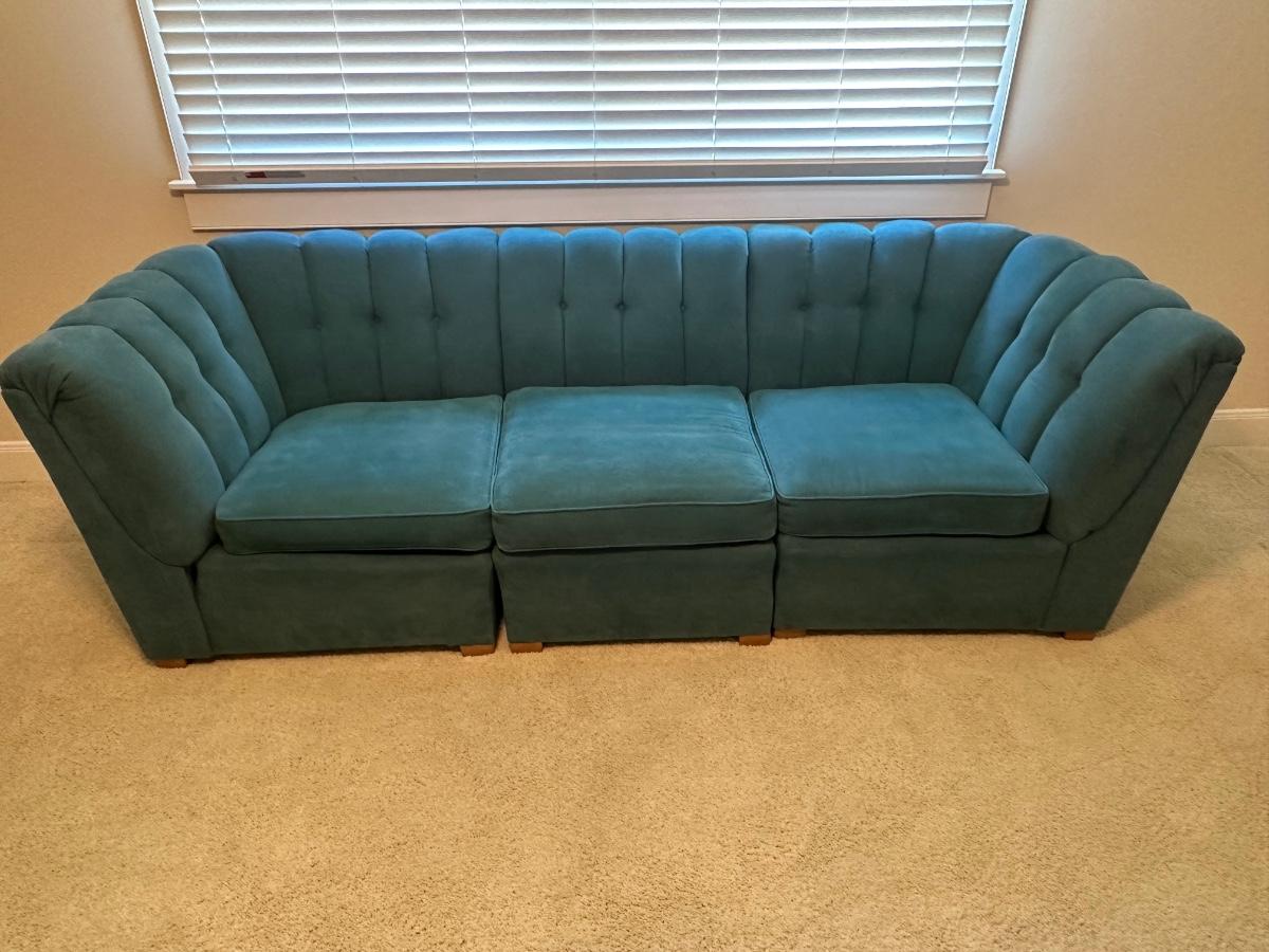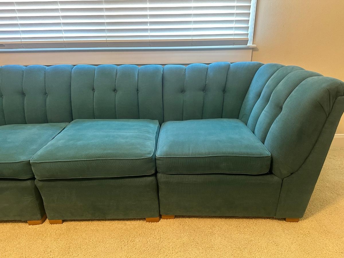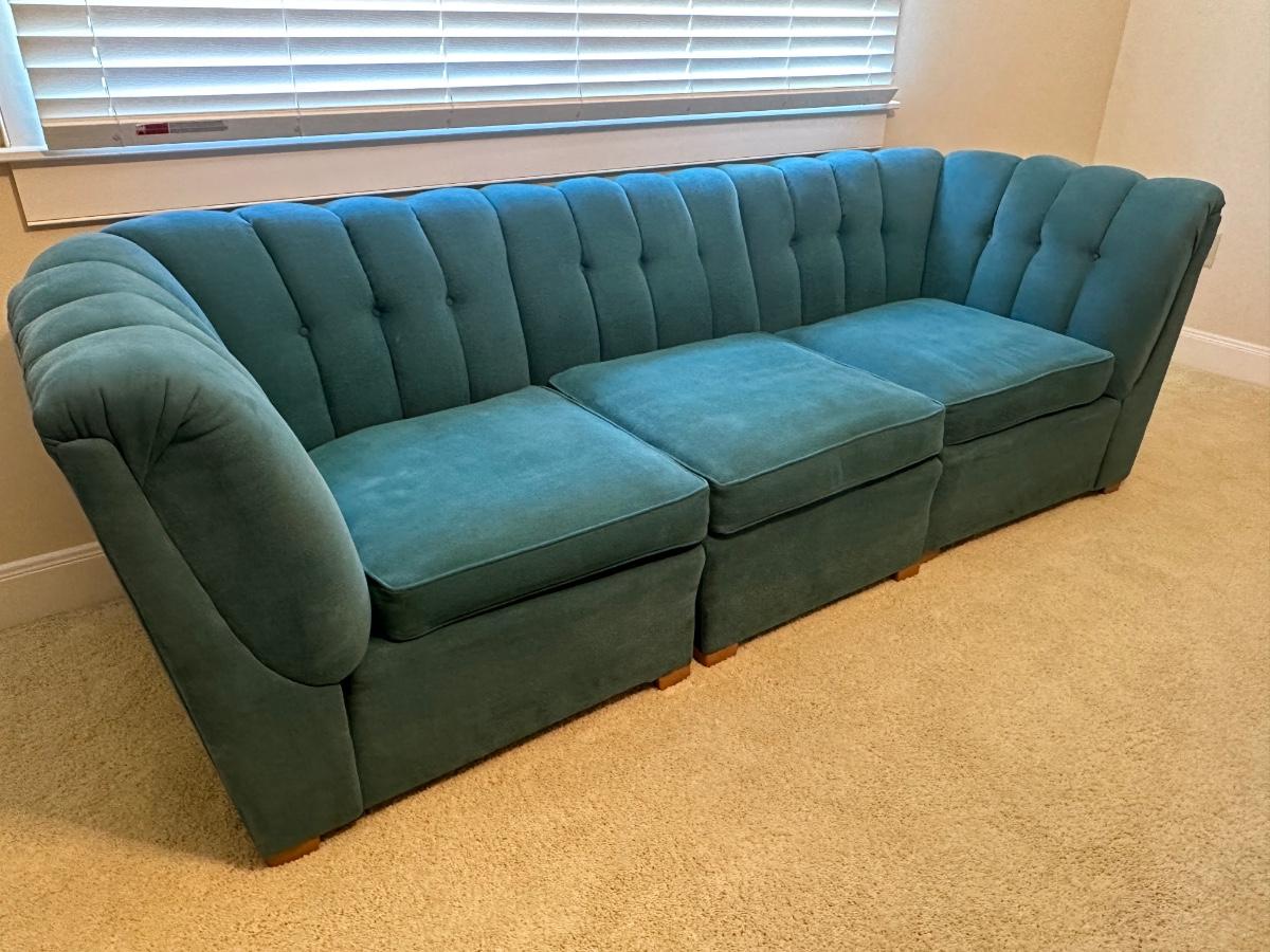 Sofa has been recovered. Slight wear on the fabric but beautiful overall!