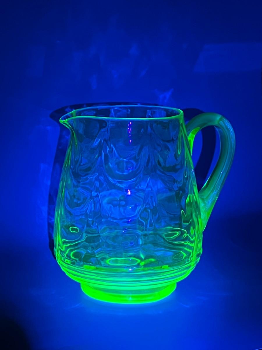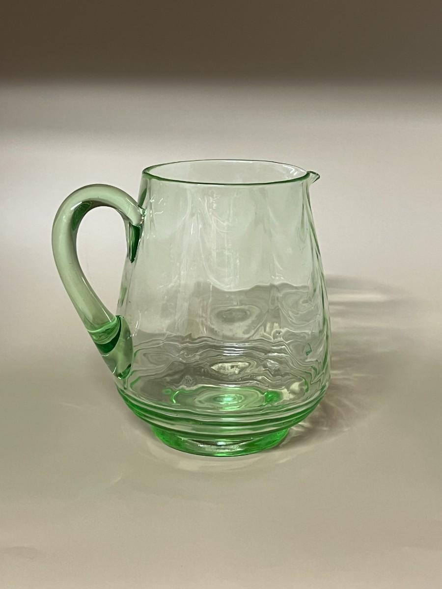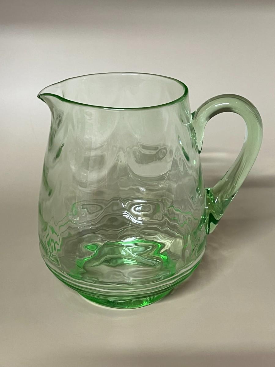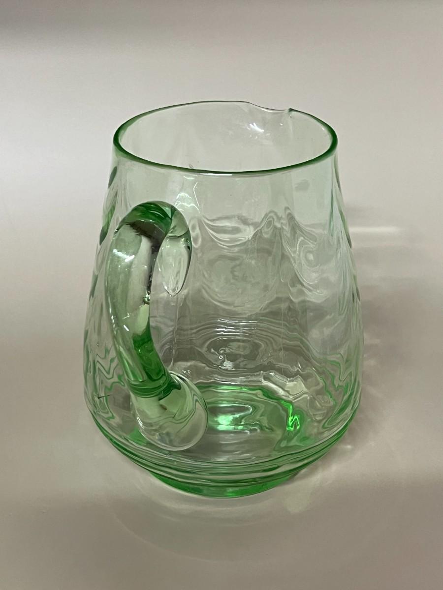 1920s Whitefriars England Depression Striated Green Uranium 2 Qt Glass Pitcher