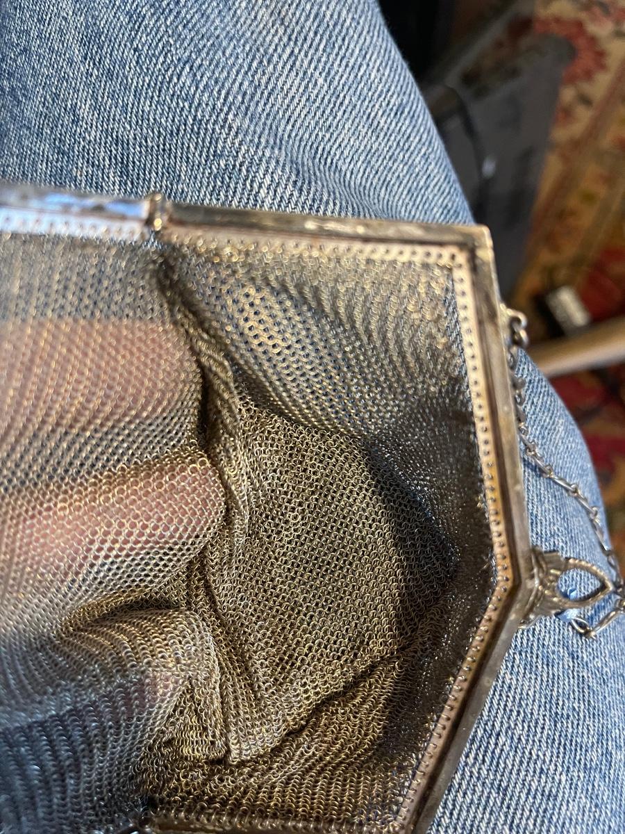 1920s Whiting & Davis Silver Chain Metal Mesh Flapper Purse Handbag 11.5” length top of chain to bottom 4.5” wide. Great shape