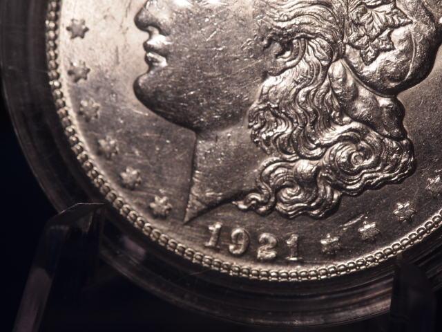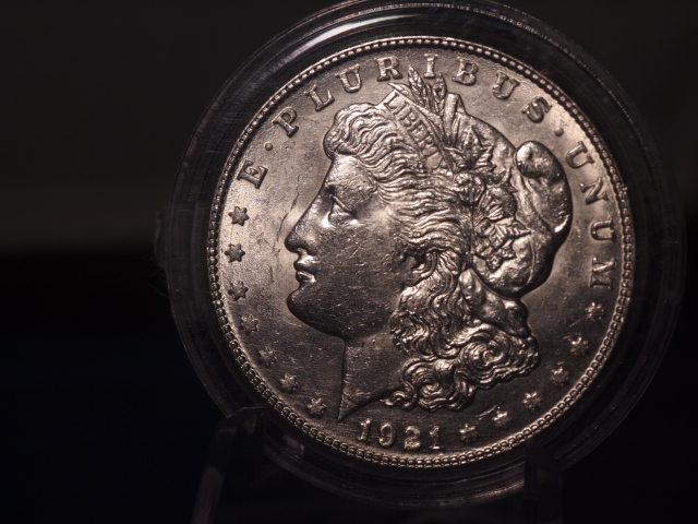 1921 S Morgan Silver Dollar in Coin Protector Has Bag Marks but very little usage wear marks Value is 128 to 1090