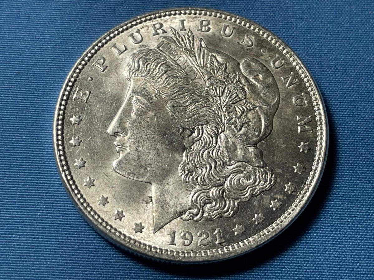 1921-P UNCIRCULATED CONDITION MORGAN SILVER DOLLAR (COIN #34). $5 DOMESTIC SHIPPING.