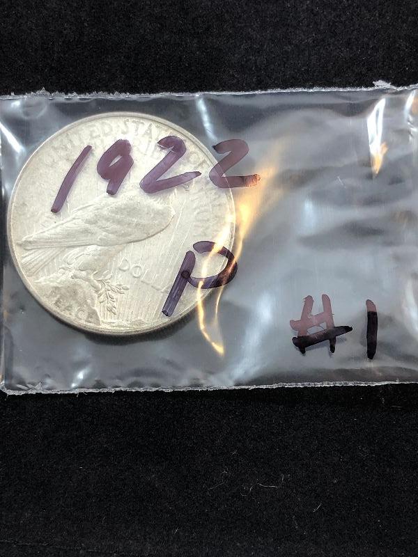 1922 P US Peace Dollar One Dollar Silver Coin Lot #1