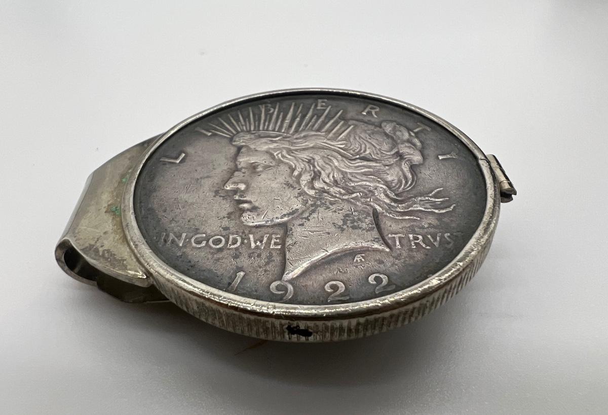 The highly sought after 1922 Peace with 90% Silver made into a money clip.