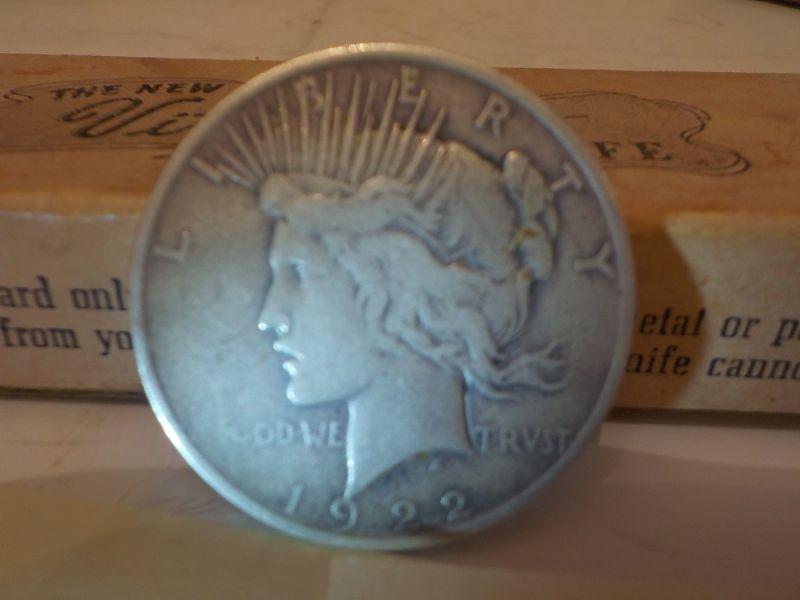 1922 Silver peace dollar in vf cond.