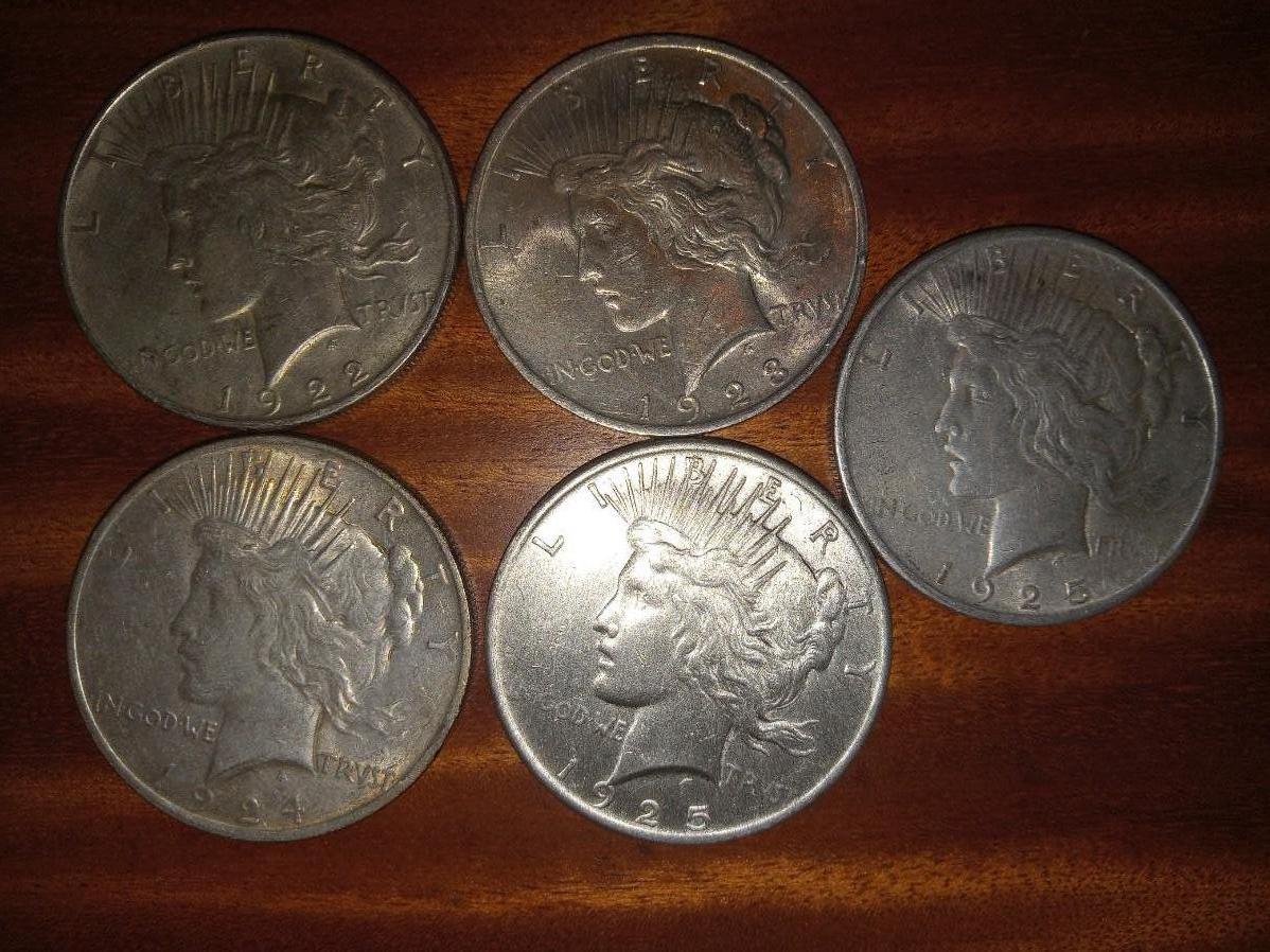 1922p, 1923p,1924p,1925p,1926p peace dollars