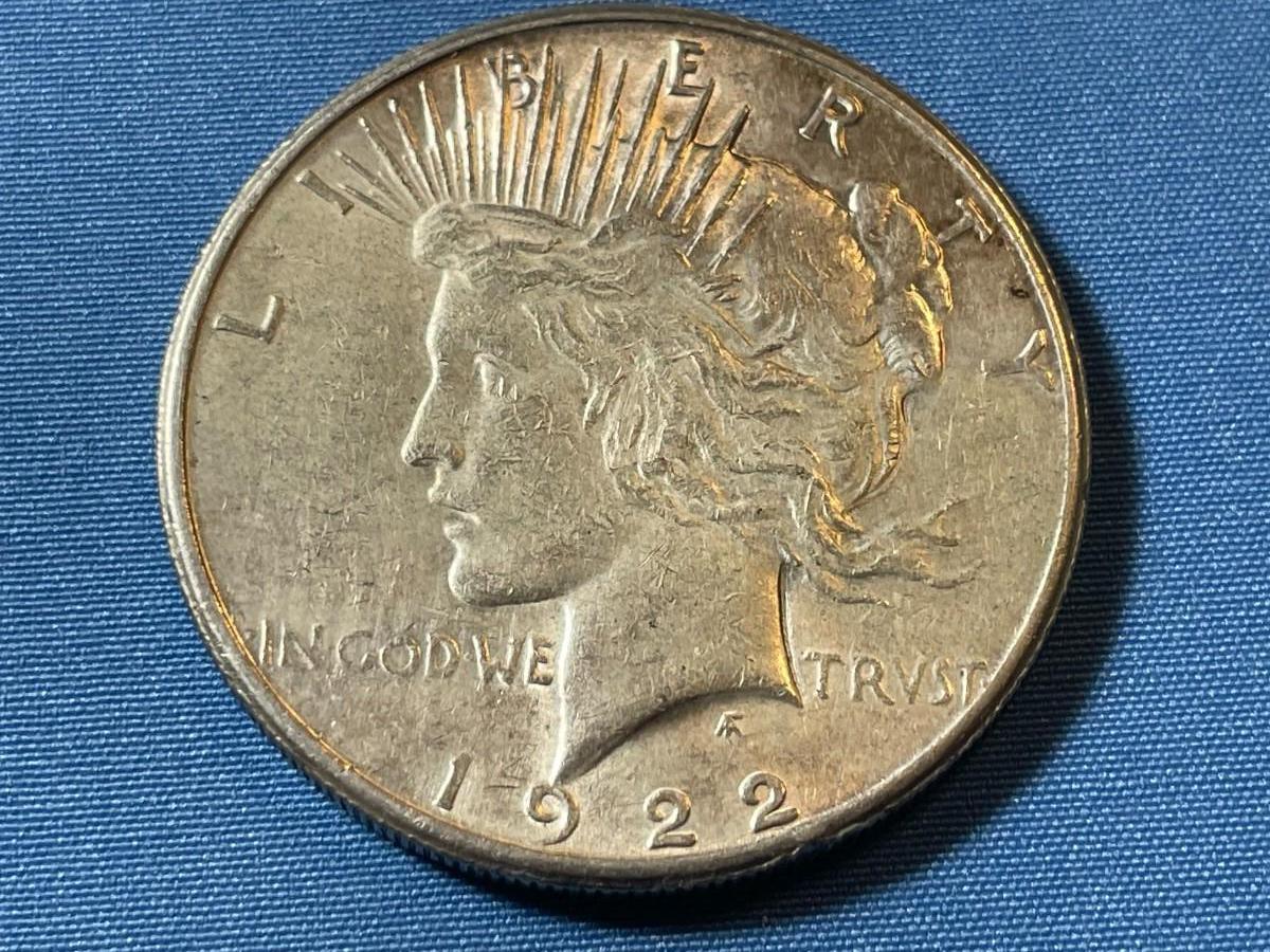 1922-S VERY FINE+ CONDITION PEACE SILVER DOLLAR AS PICTURED. $5 DOMESTIC SHIPPING.