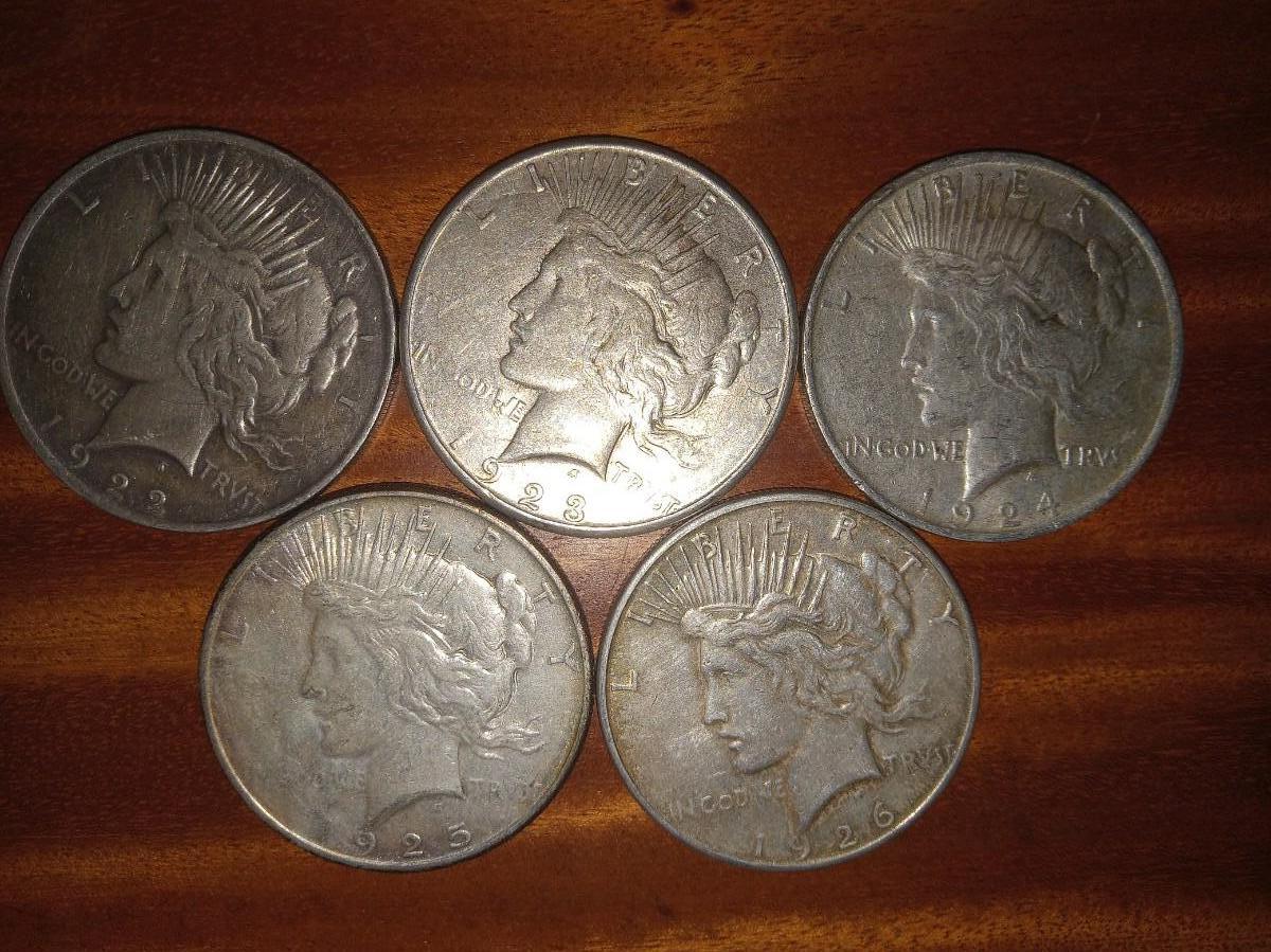 1923, 1926 S and 1922, 1924, 1925 P's peace dollars