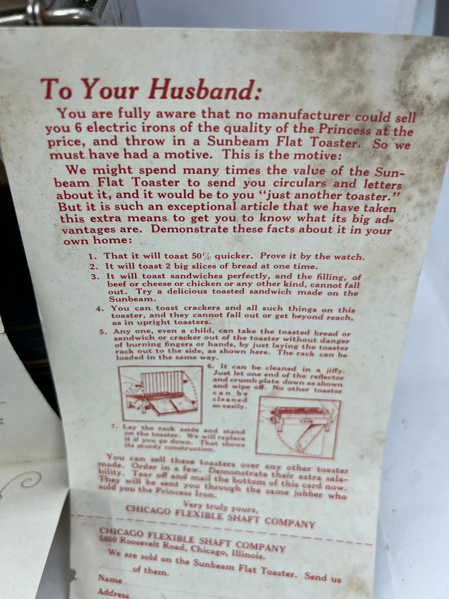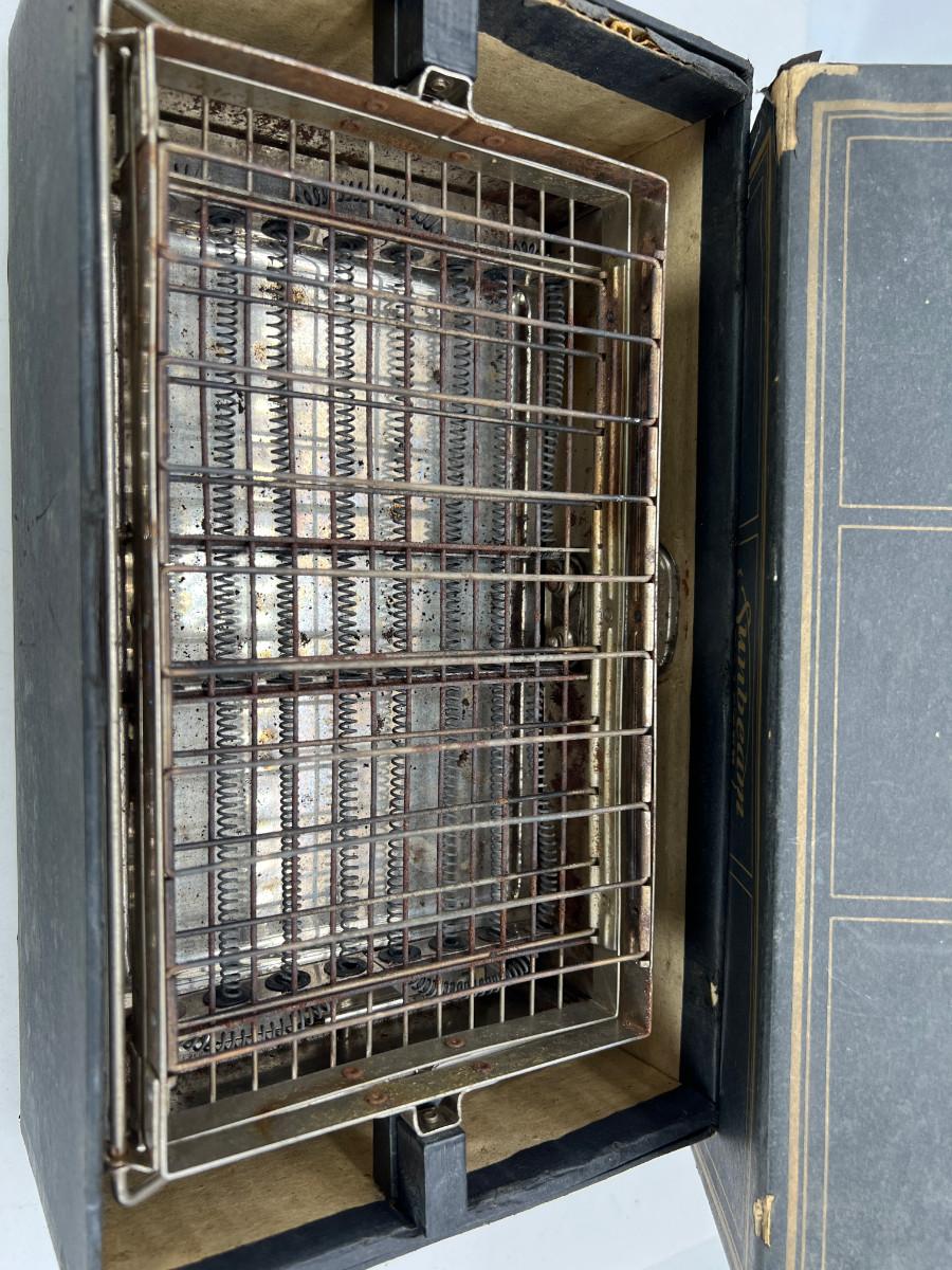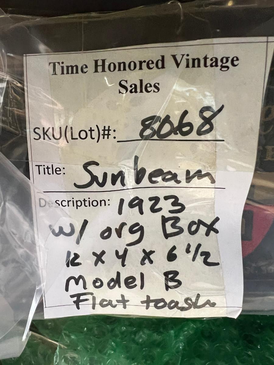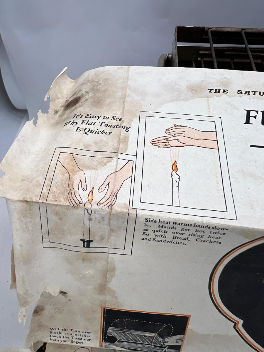 Tell your husband! Model B Great toaster for renovation with original box and brochure. Cord in great shape. Unit is being sold as a "non-working" vintage electronic device that should be gone over by a qualified technician prior to use. May have rust, corrosion or other flaws see pictures.