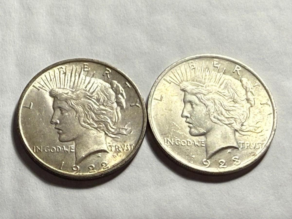 1923-P & 1924-P AU/UNCIRCULATED CONDITION PEACE SILVER DOLLARS AS PICTURED. $5 DOMESTIC SHIPPING.