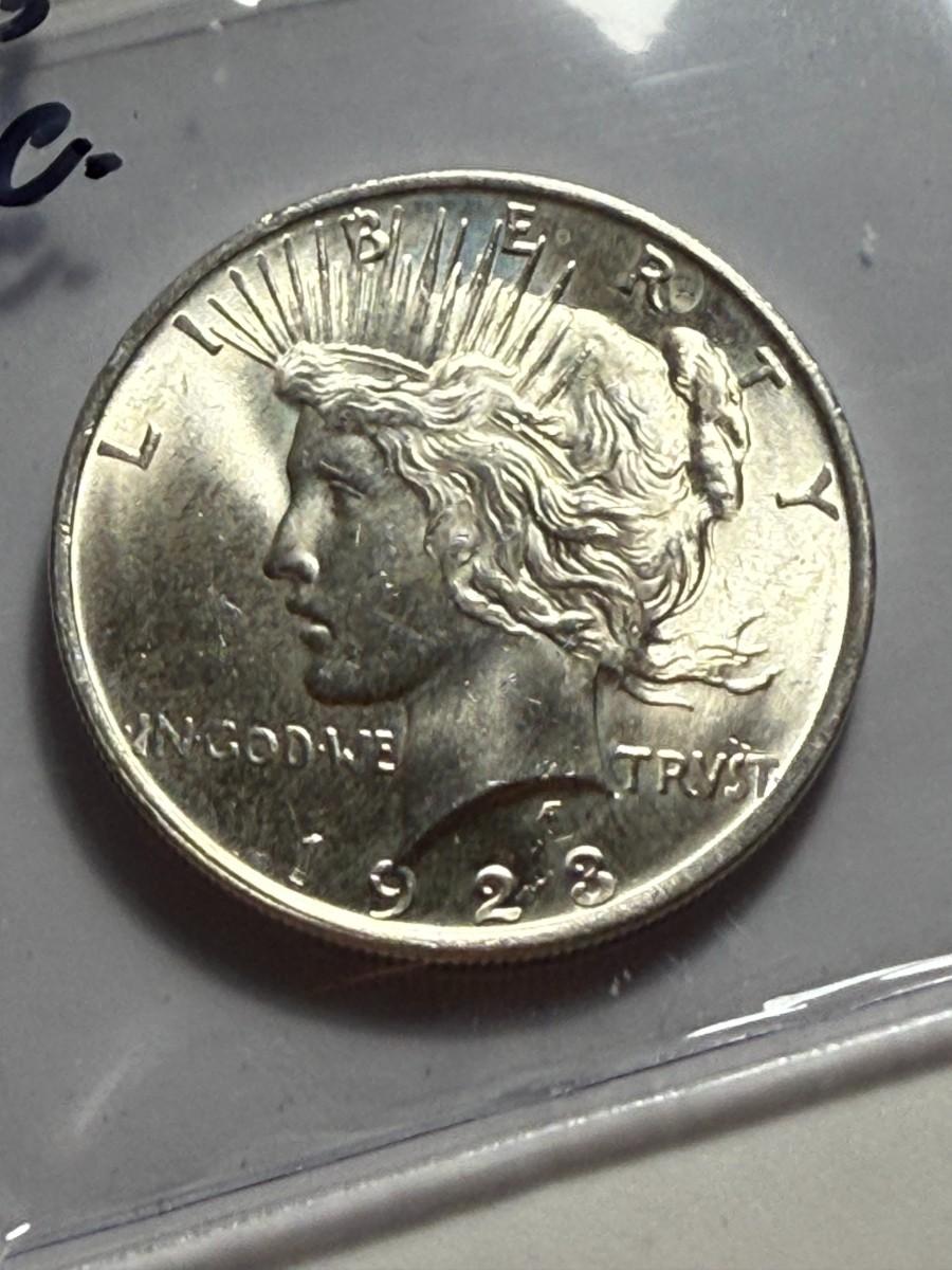 1923-P UNCIRCULATED CONDITION PEACE SILVER DOLLAR COIN #4 AS PICTURED. $5 DOMESTIC SHIPPING.