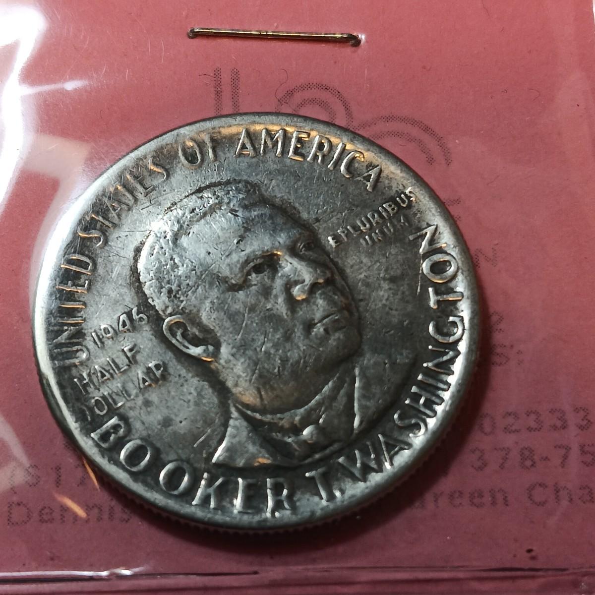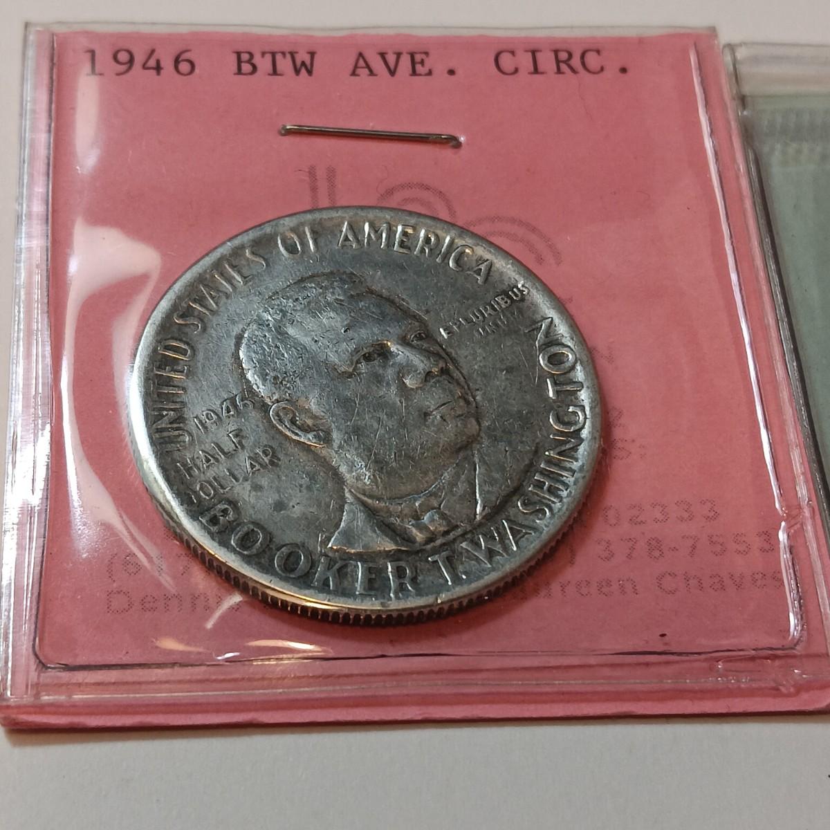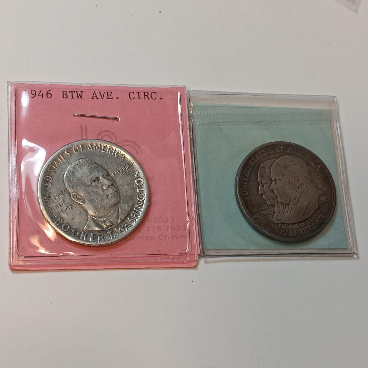 1923-S MONROE & 1946 BOOKER T WASHINGTON SILVER HALF DOLLARS