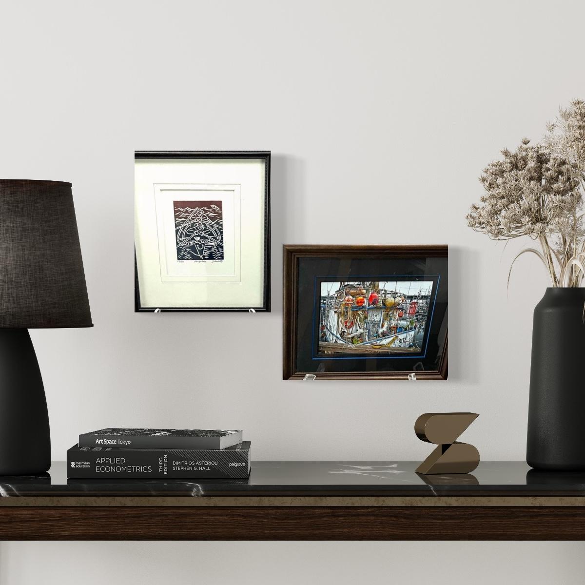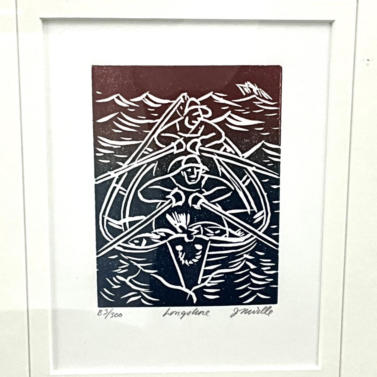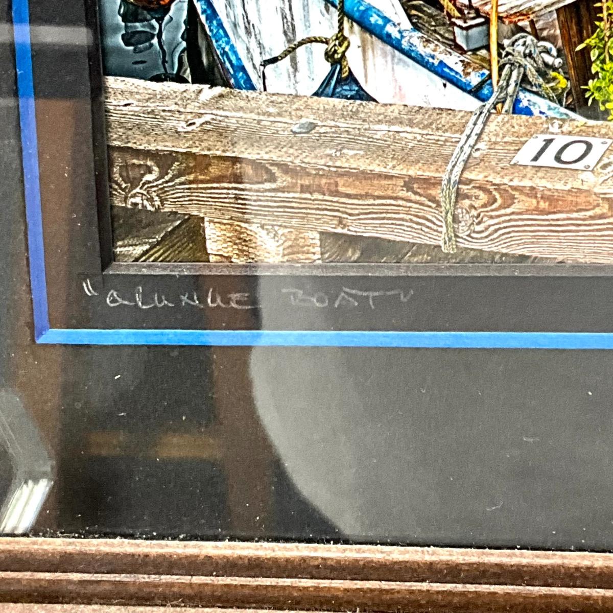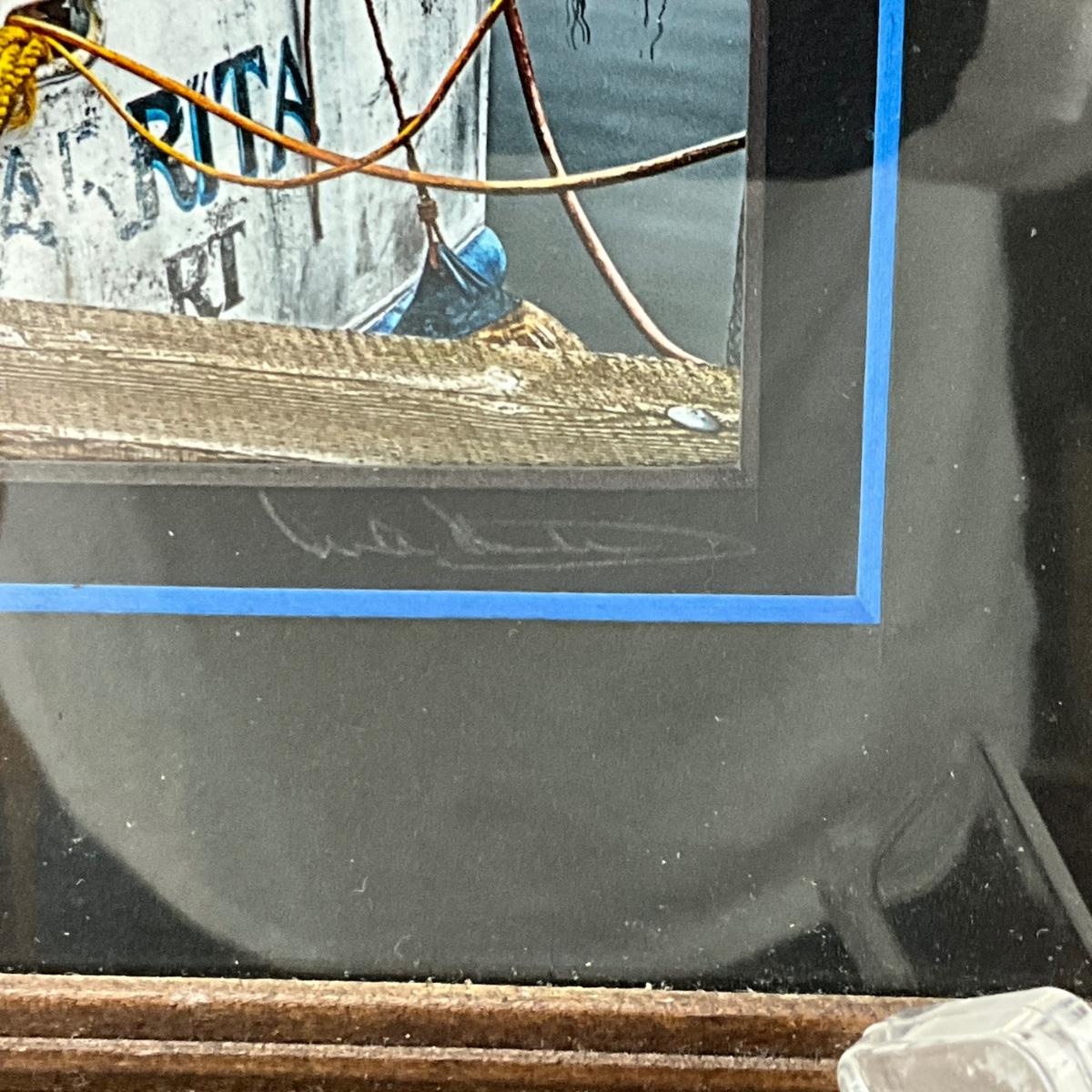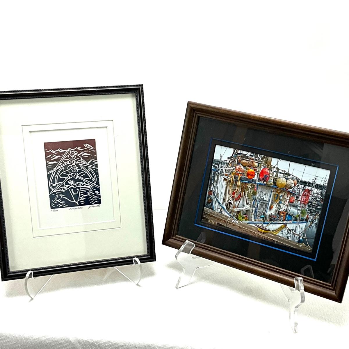 The boat etching is signed and measures 9.25" wide x 11" high and the photograph of the Work boat at port in Washington State and measures 9.25" wide x 11.25" high.