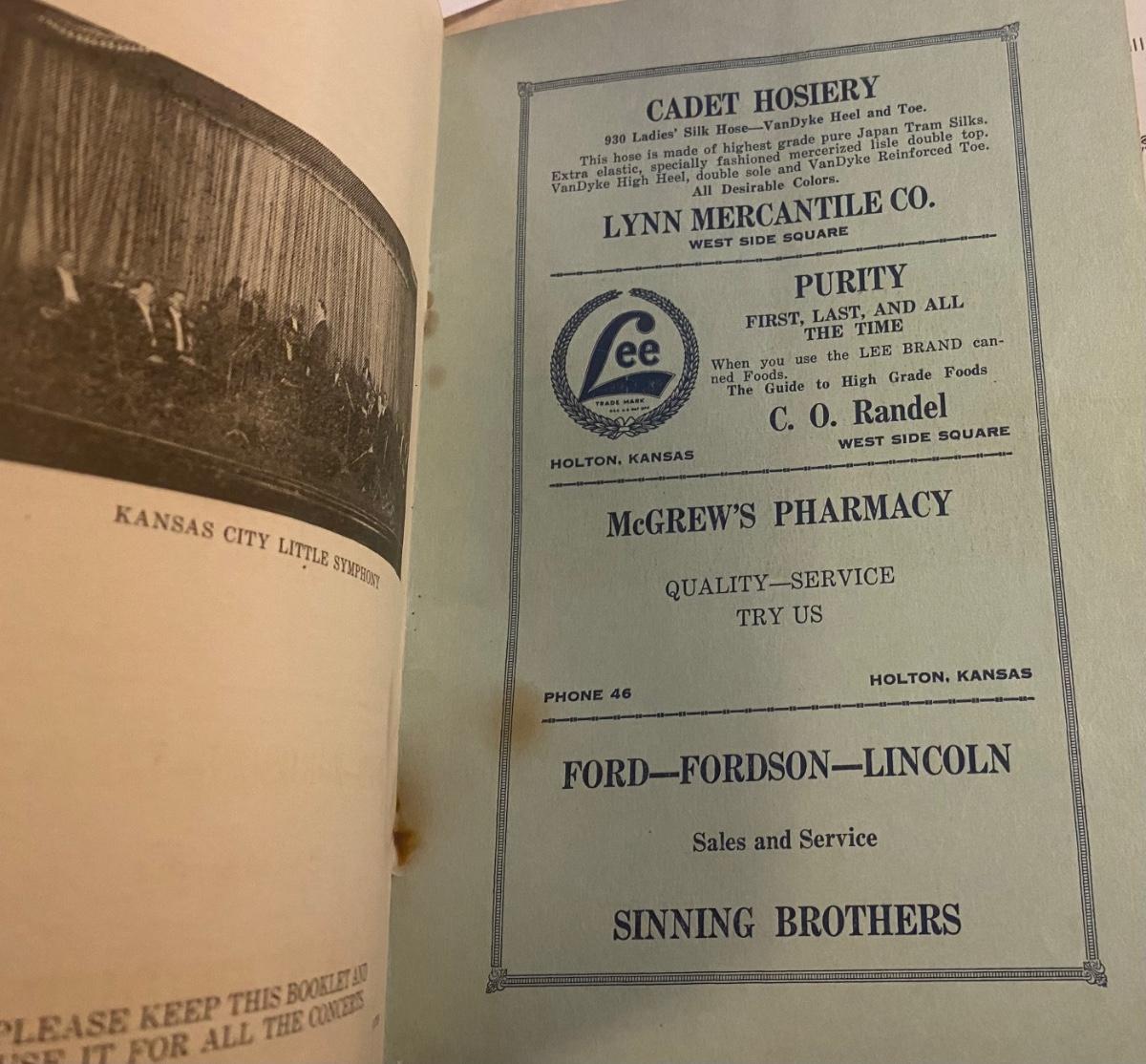 1924 Holton Ks Music Week and More