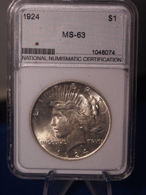 1924 MS63 Certified Peace Silver Dollar in Coin Protector Very Clean Coin From NNC