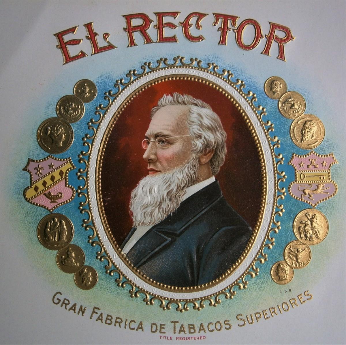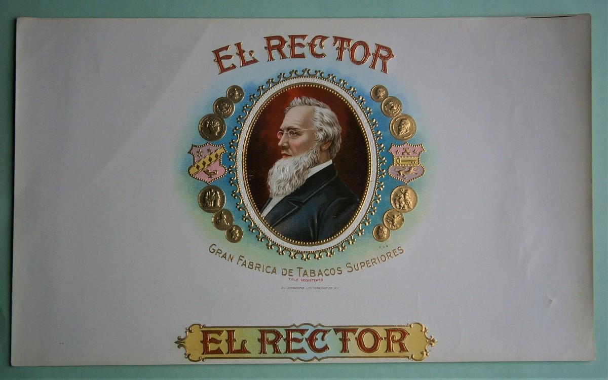 "EL RECTOR" Inner Lid Cigar Box Label, form early 1900's or earlier, by O. L. Schwencke Lithographic Co., NY, 10 x 6 in., embossed & lithographed on paper.