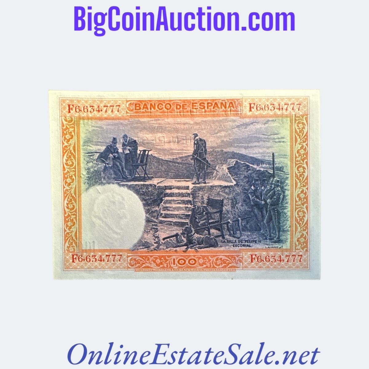 1925 SPAIN 100 PESETAS - REPUBLIC ISSUE 1936 P69c AU/UNC