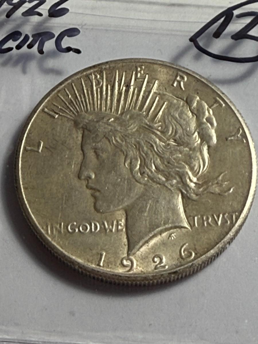 1926-P CIRCULATED CONDITION PEACE SILVER DOLLAR COIN #12 AS PICTURED. $5 DOMESTIC SHIPPING.