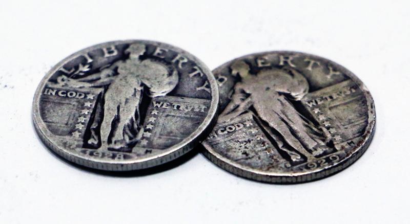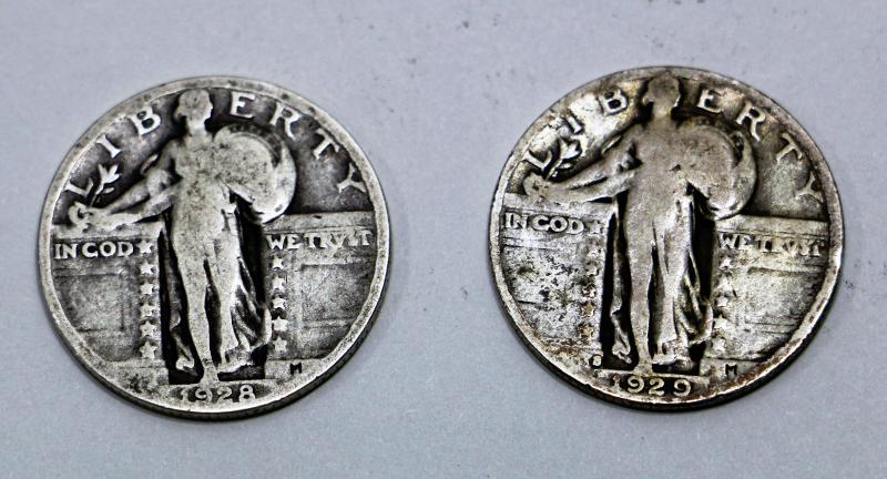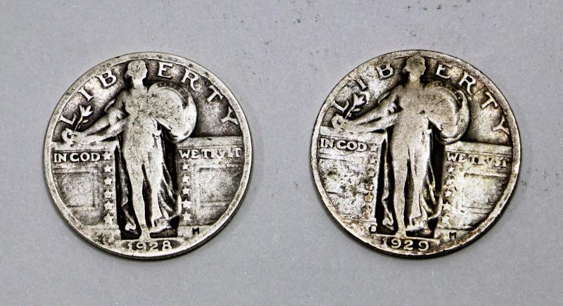 1928 & 1929 Standing Liberty Silver Quarter Doallars Set - American Coins 501-07