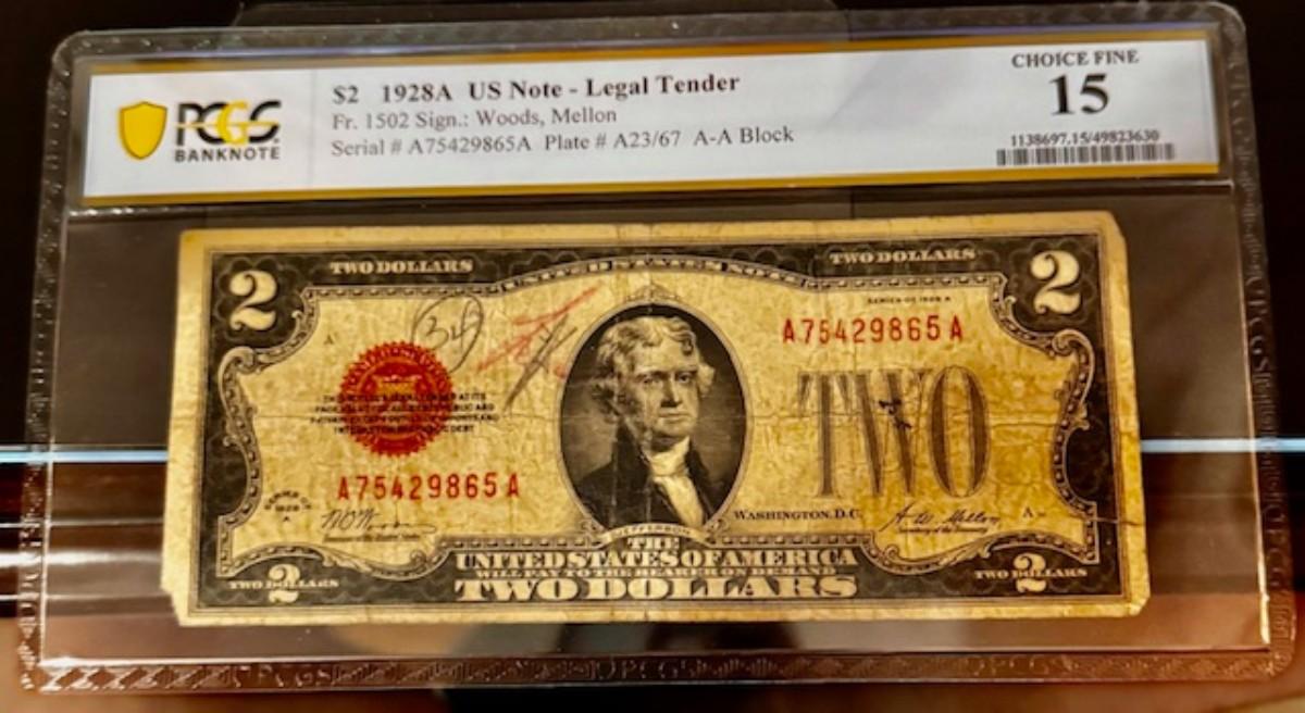 1928 A US Note $2 Bill Graded Choice Fine 15