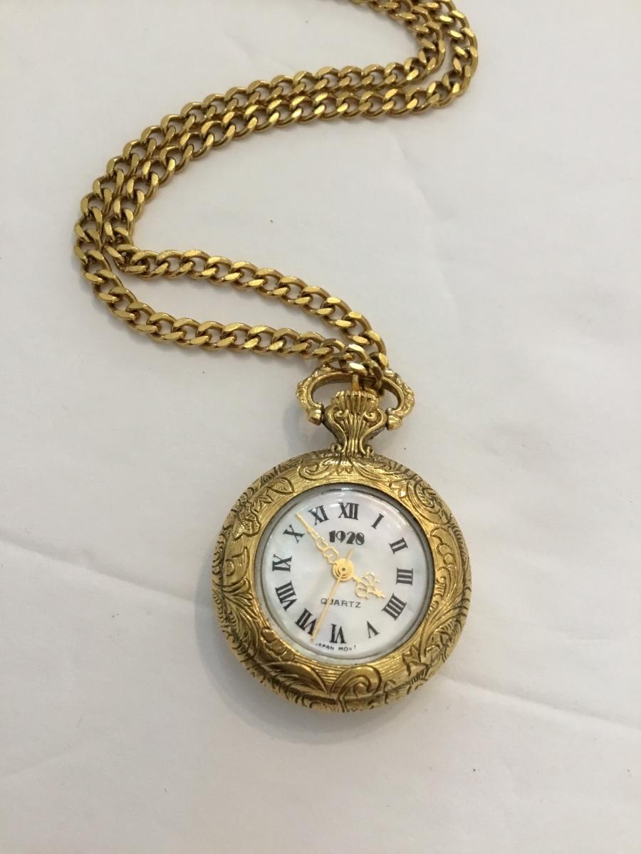 1928 Company, vintage pocket watch courts open face 27 MM pendant watch working with gold tone chain