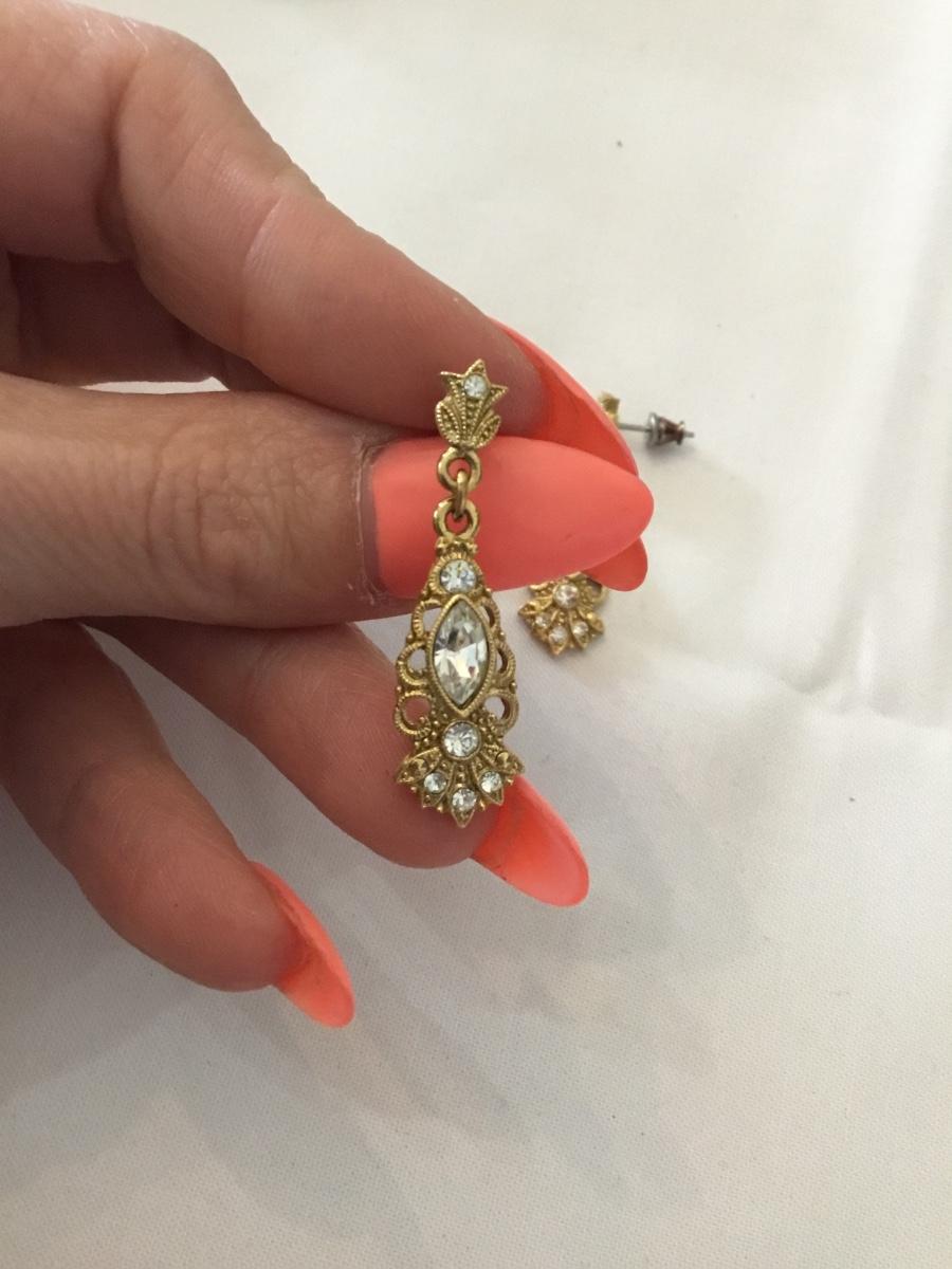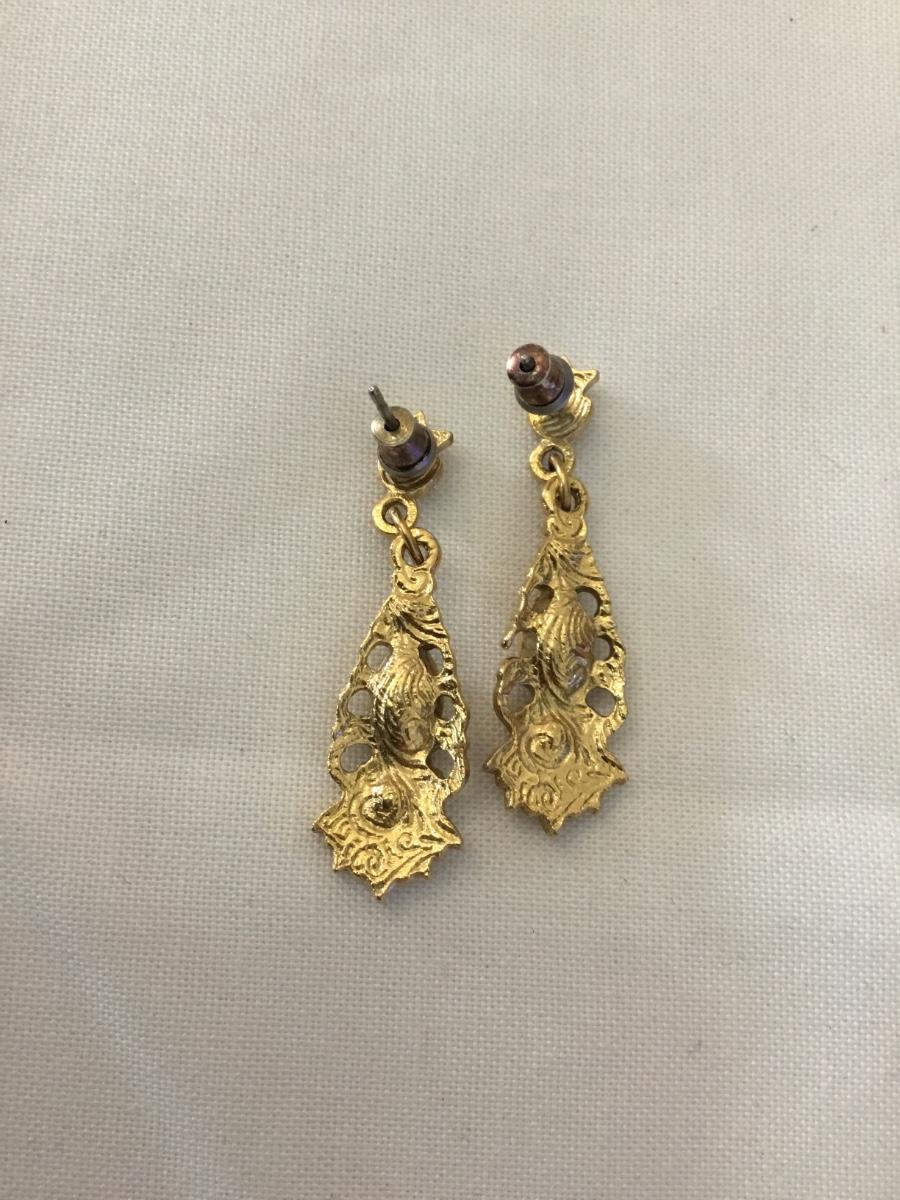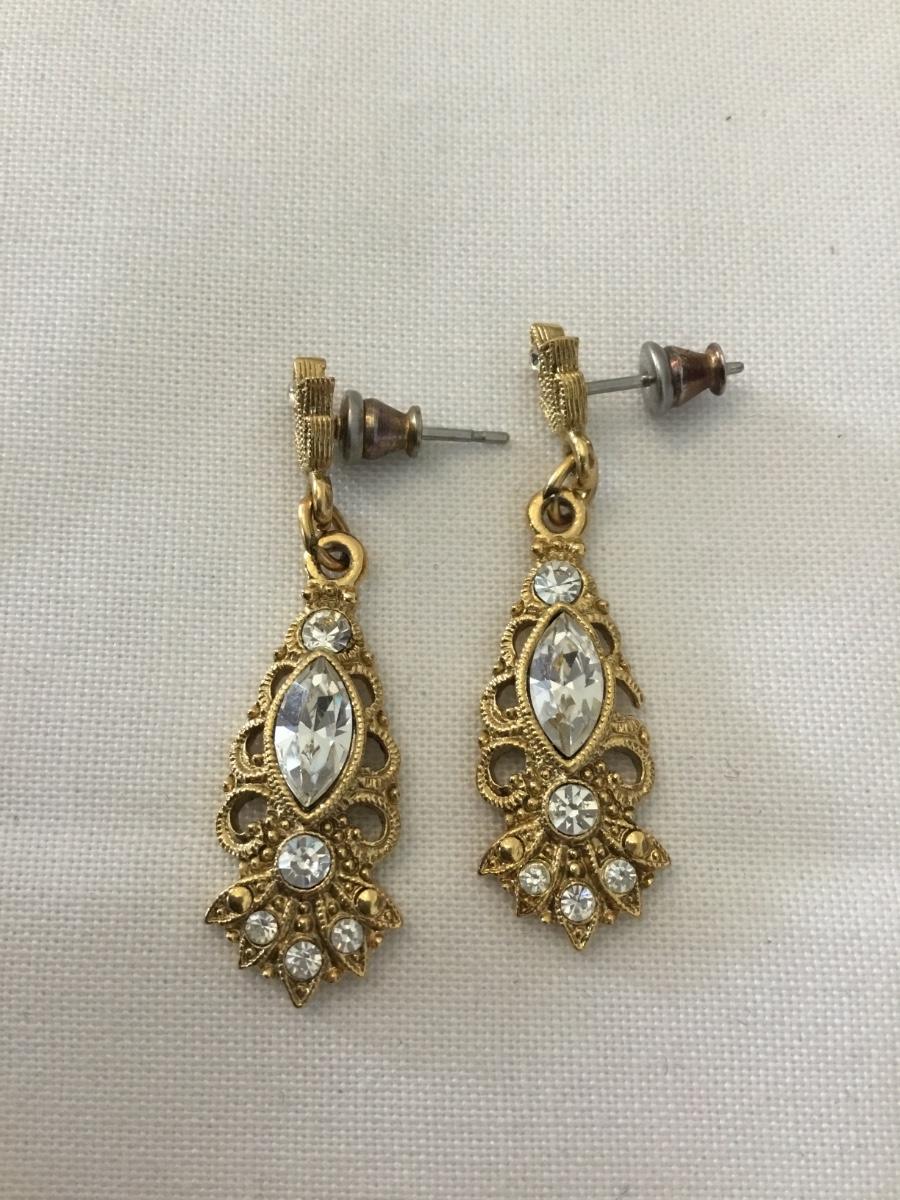 1928 Gold tone filigree crystal elegant vintage earrings