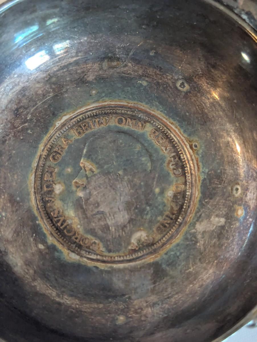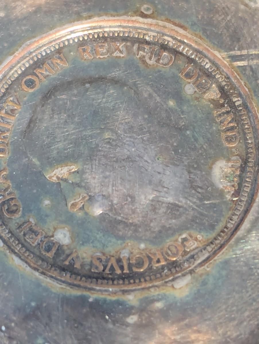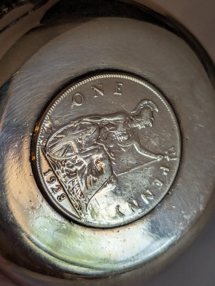 1928 Great Britain United Kingdom UK King GEORGE V Antique OLD Penny Coin Trinket Dish #24 (DR)