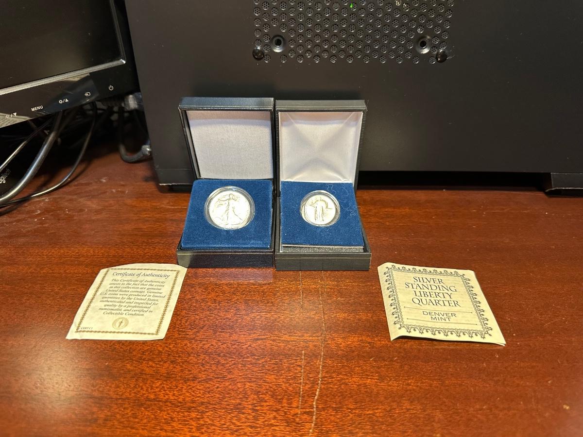 1928 SILVER STANDING LIBERTY QUARTER AND 1942 SILVER WALKING LIBERTY QUARTER