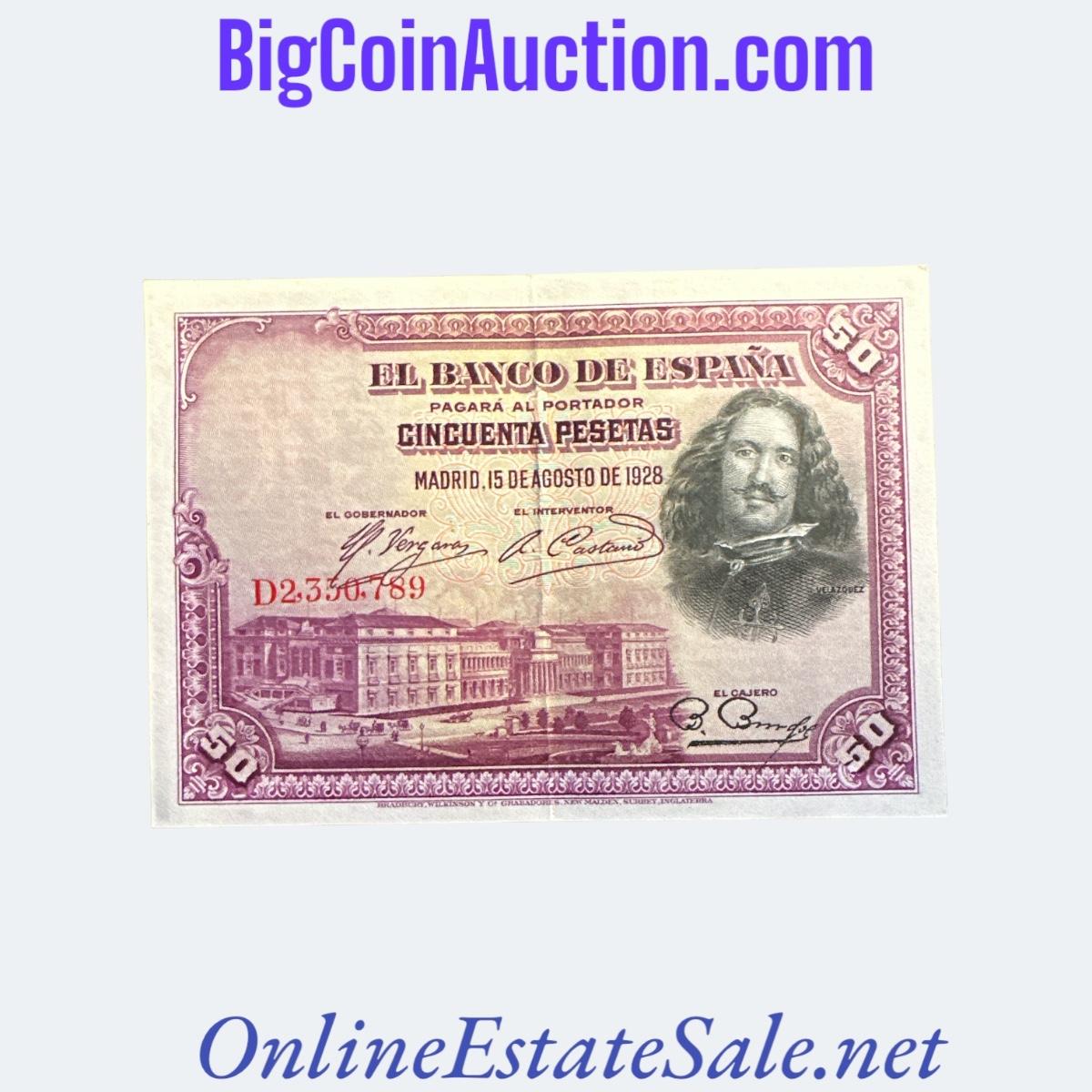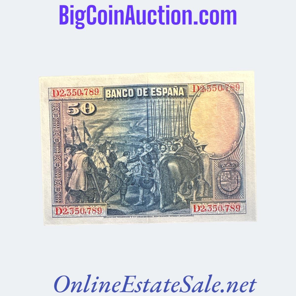 1928 SPAIN 50 PESETAS - REPUBLIC ISSUE 1936 P75b AU
