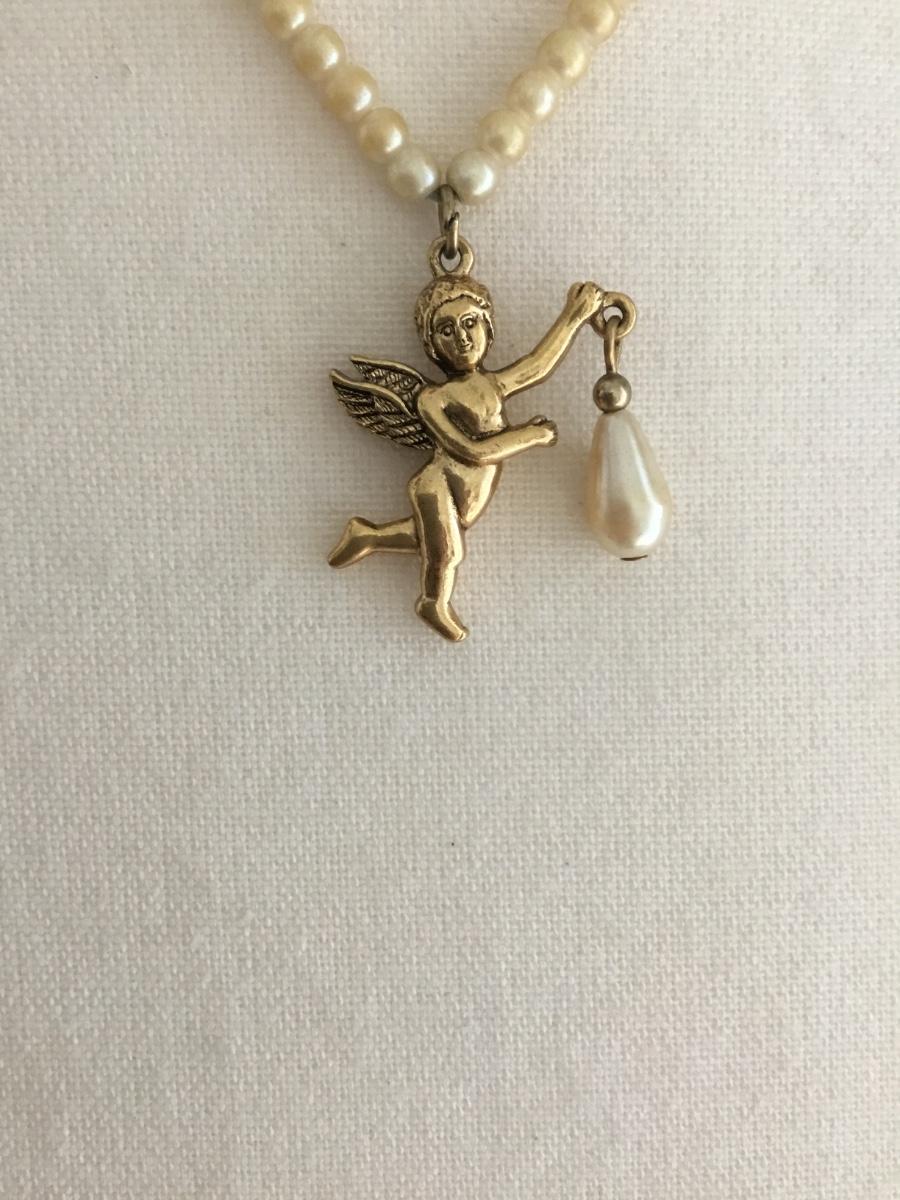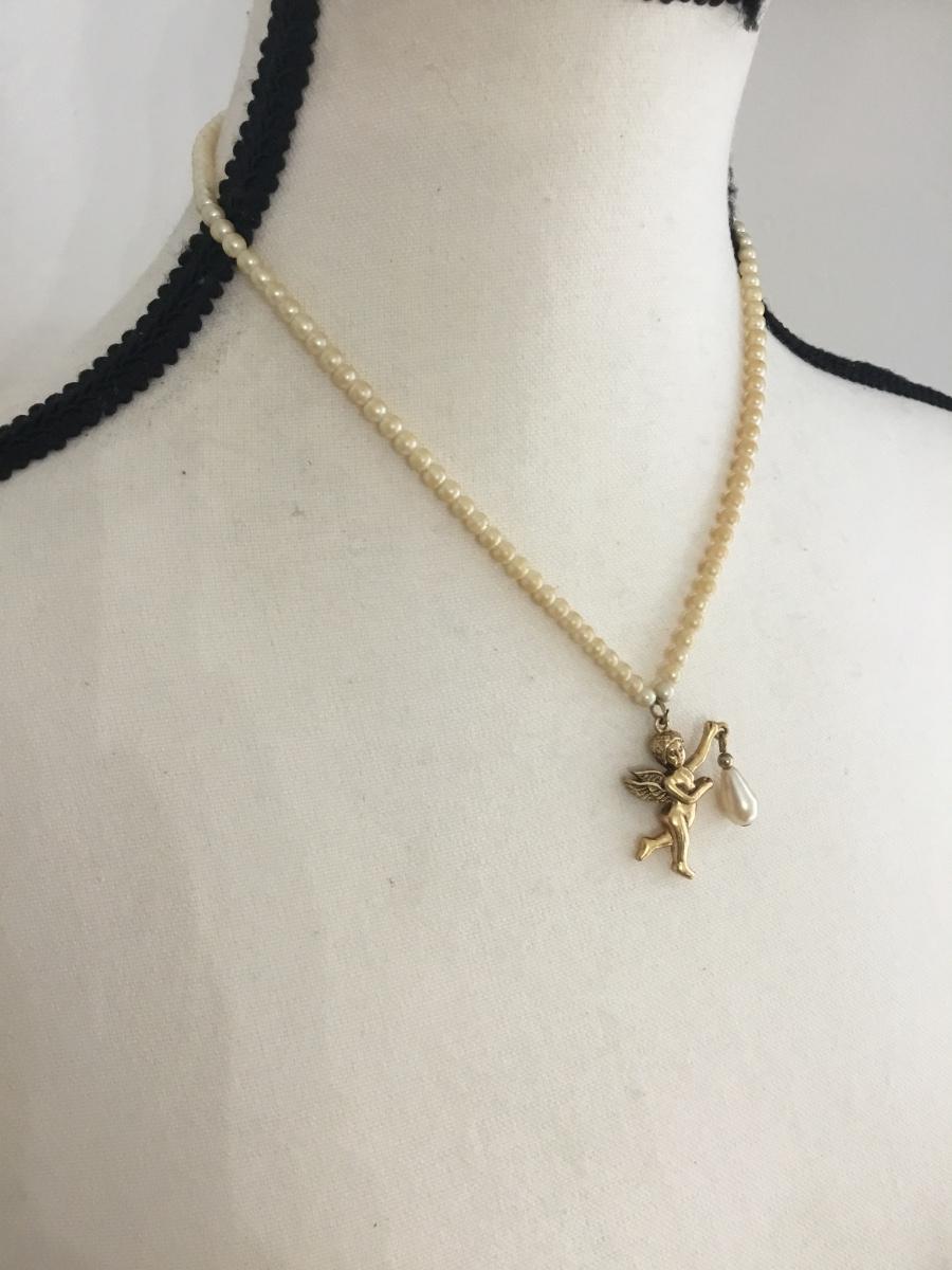 1928 vintage faux pearl necklace with cupid pendant