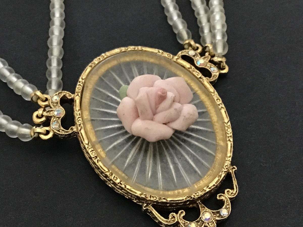 1928 Vintage Glass Porcelain 3 Strand Necklace