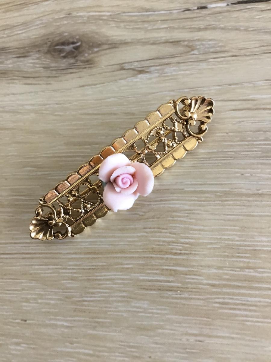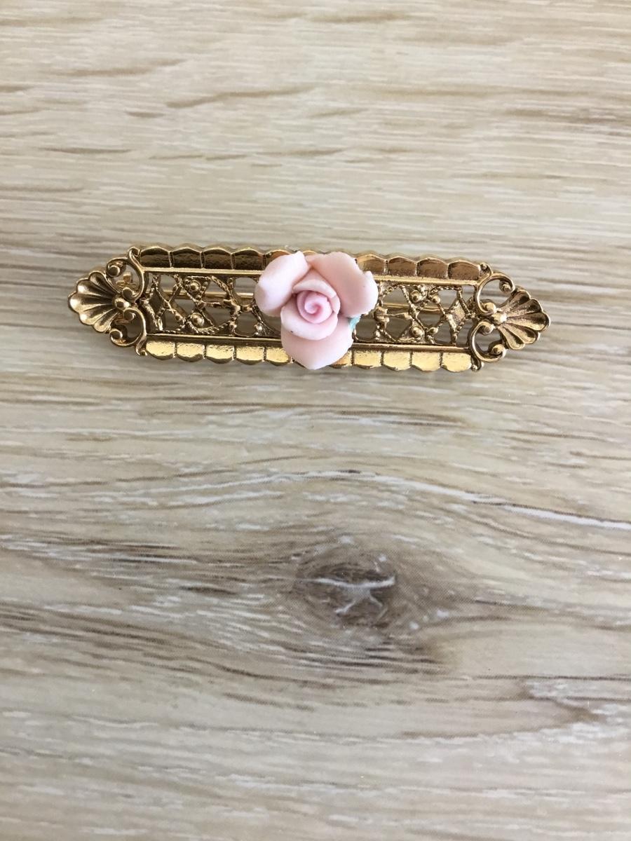 1928 vintage Gold, toned, pink rose brooch