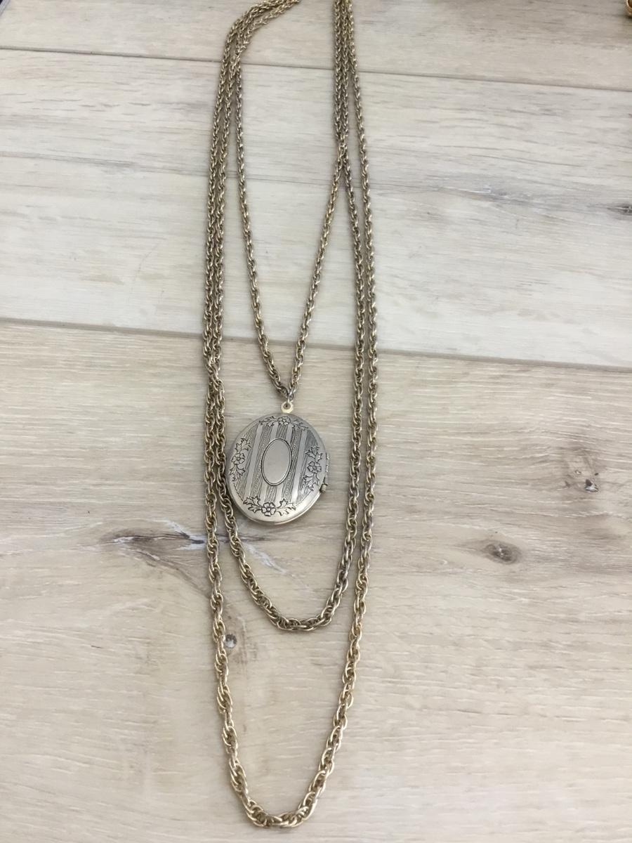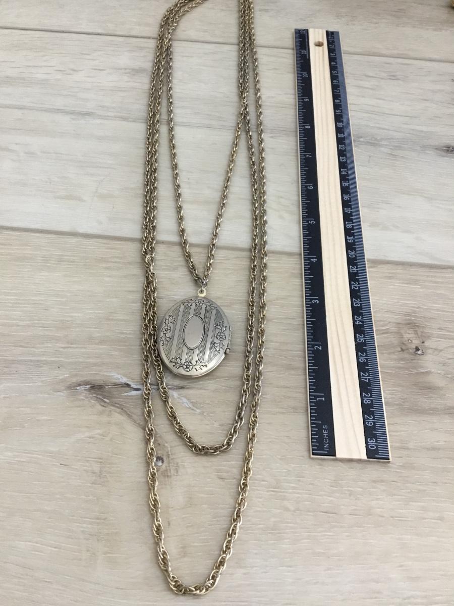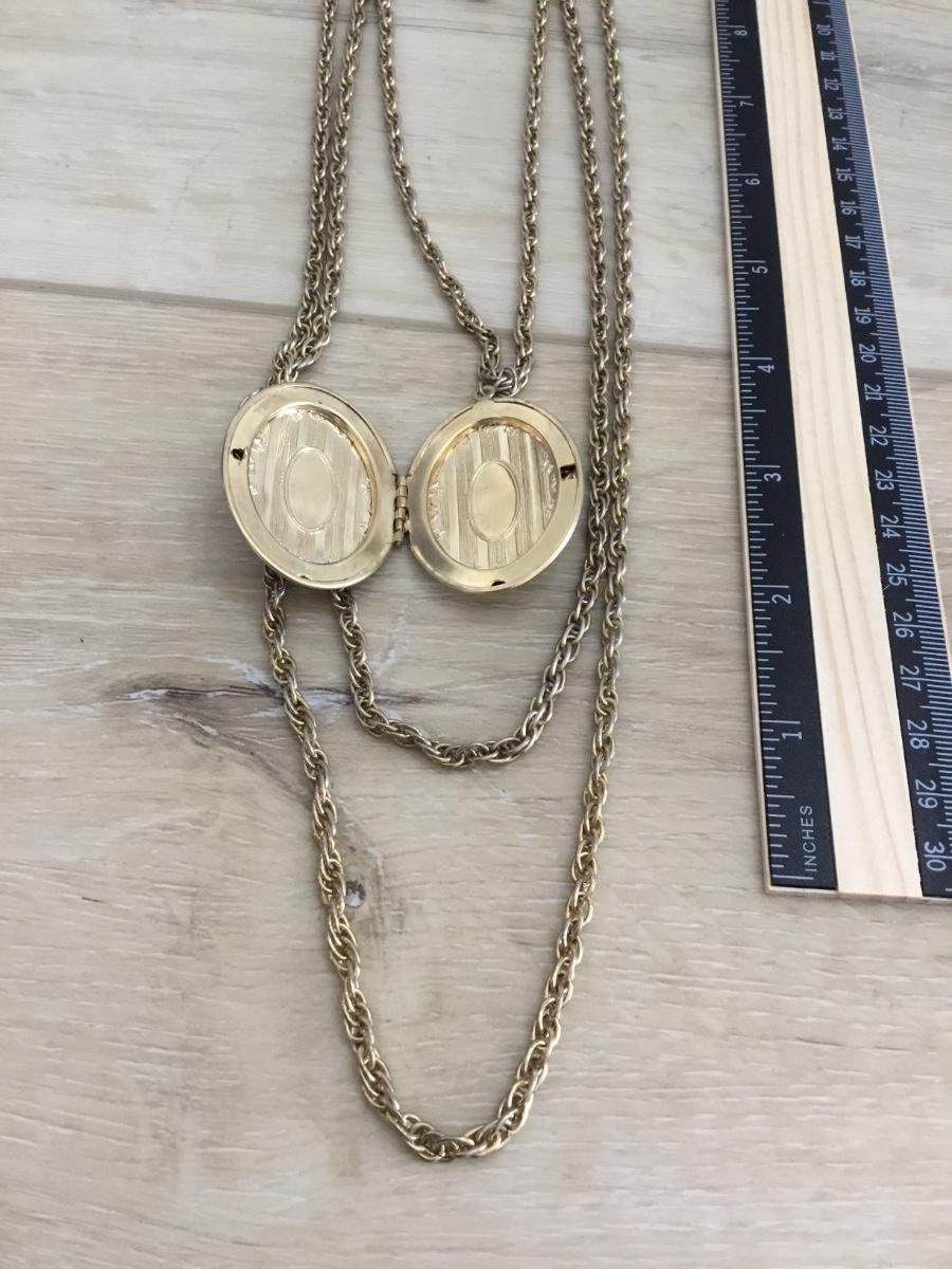1928 vintage, three strand gold, toned, locket necklace