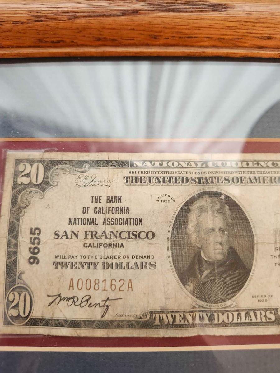 1929 $20 BANK OF AMERICA SAN FRANCISCO, CA NATIONAL CURRENCY CH. #13044★. This note is fully authentic and would make a nice addition to a paper money collection