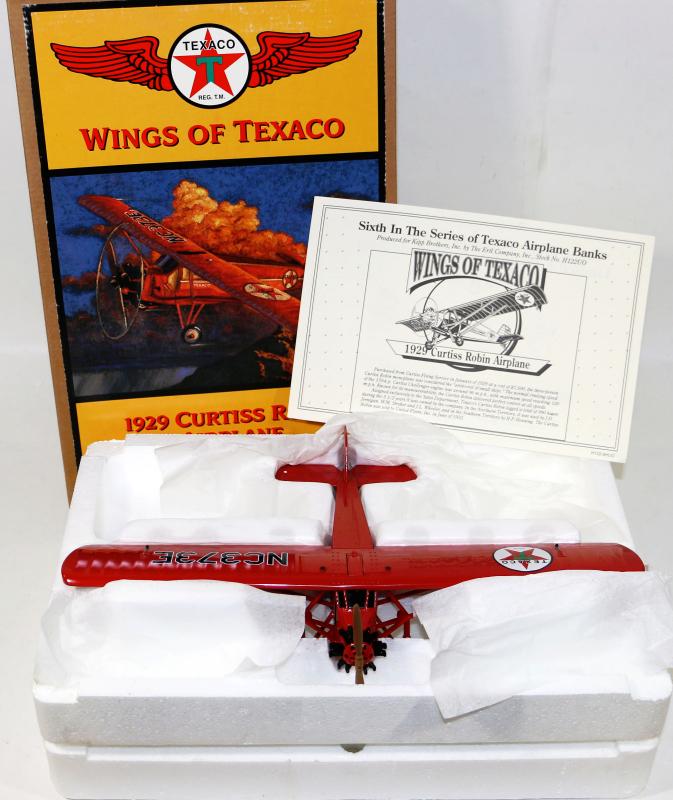 1929 Curtis Robin Airplane Model Bank Wings Of TEXACO Die Cast NOS #529-70