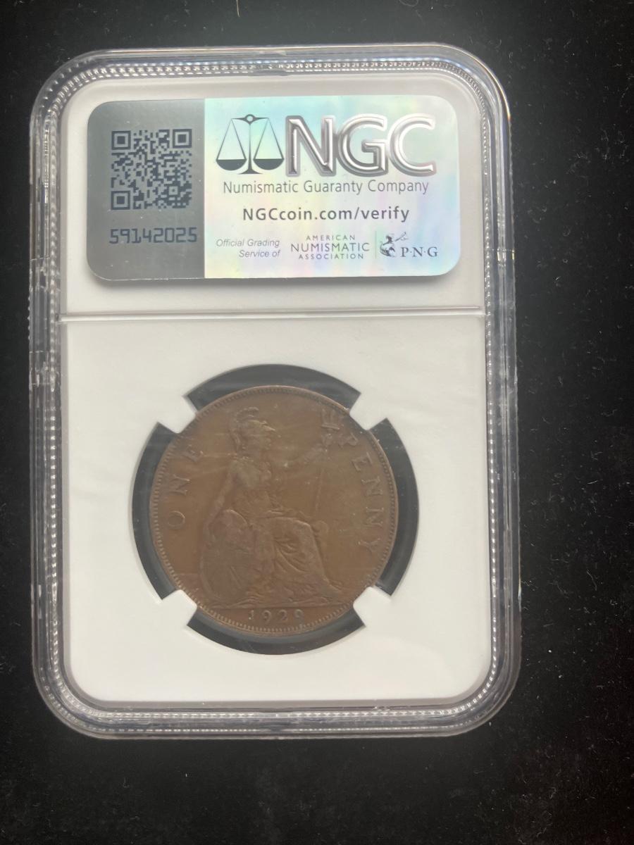 A certified 1929 Great Britain bronze Penny from the reign of King George V — a classic piece of British pre-decimal history!