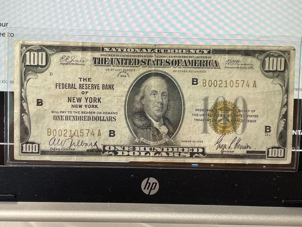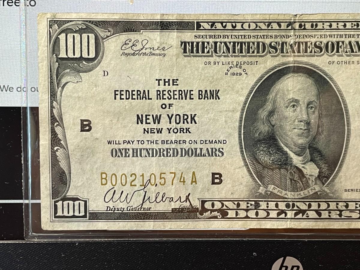 1929 Nice Circulated Condition $100 New York National Currency Serial #210574 as Pictured. $7.00 Domestic Shipping.