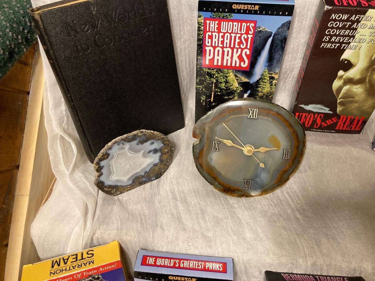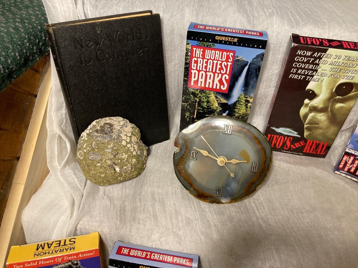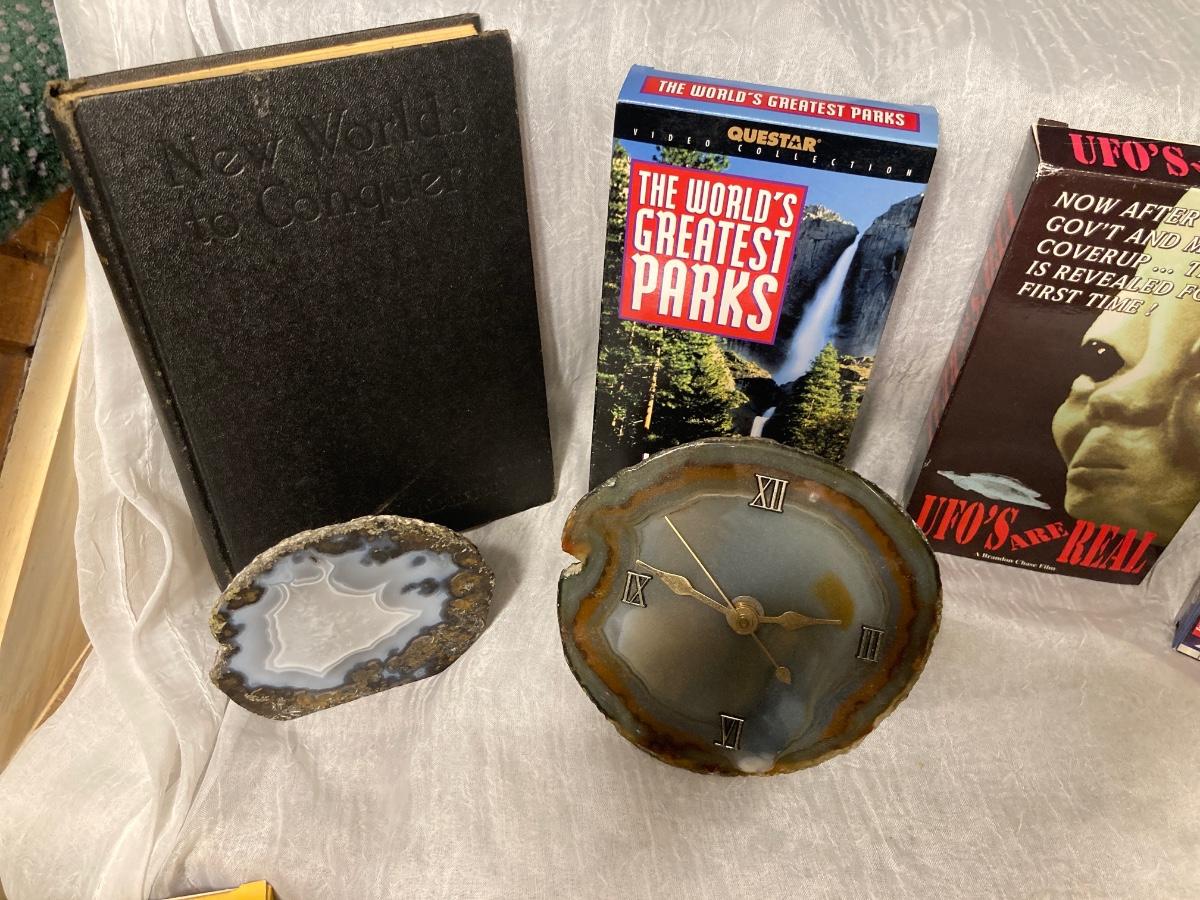 1929 “WORLD TO CONQUER” BOOK IN EXCELLENT CONDITION, GEOLOGICAL GOODIES AND SOME INTERESTING EDUCATIONAL MOVIES!