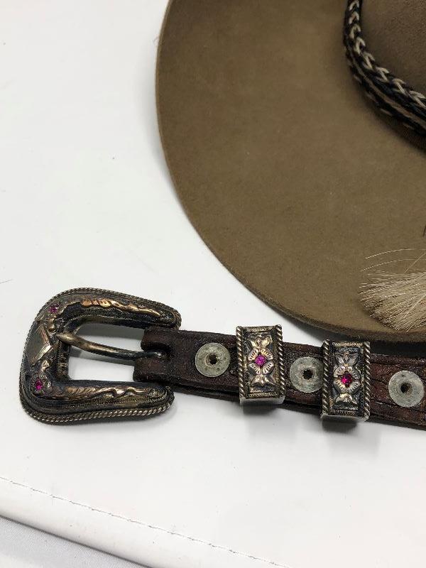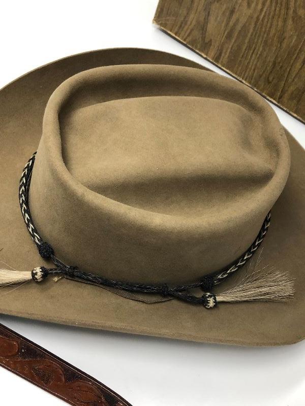 193: Resistol Western Leather Works Hand Creased Hat and Small Leather Belt