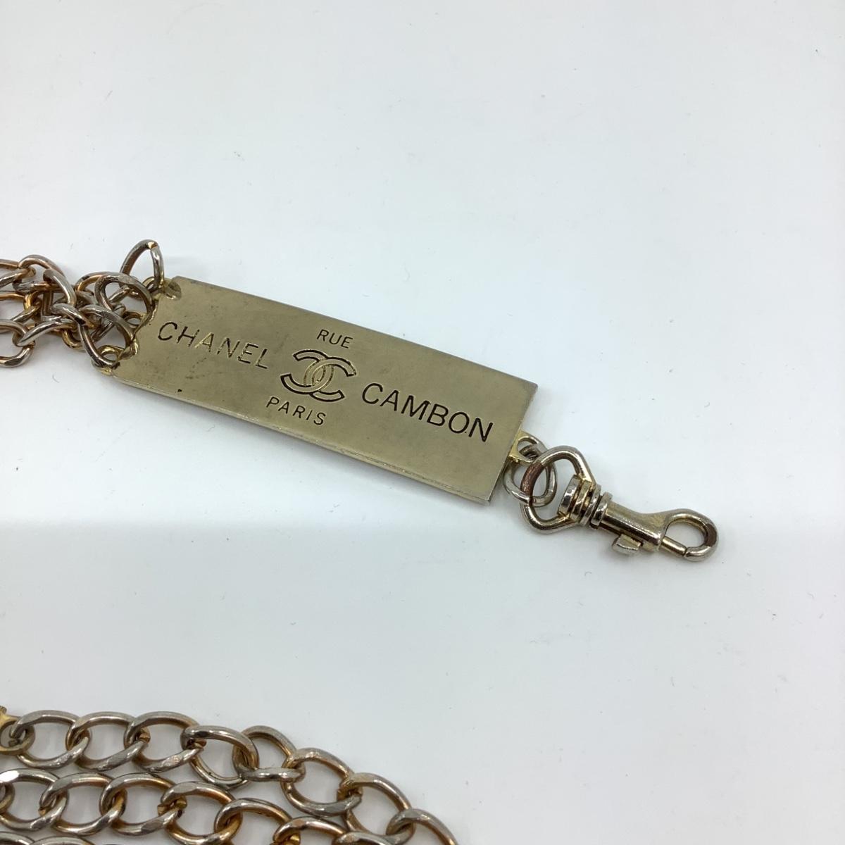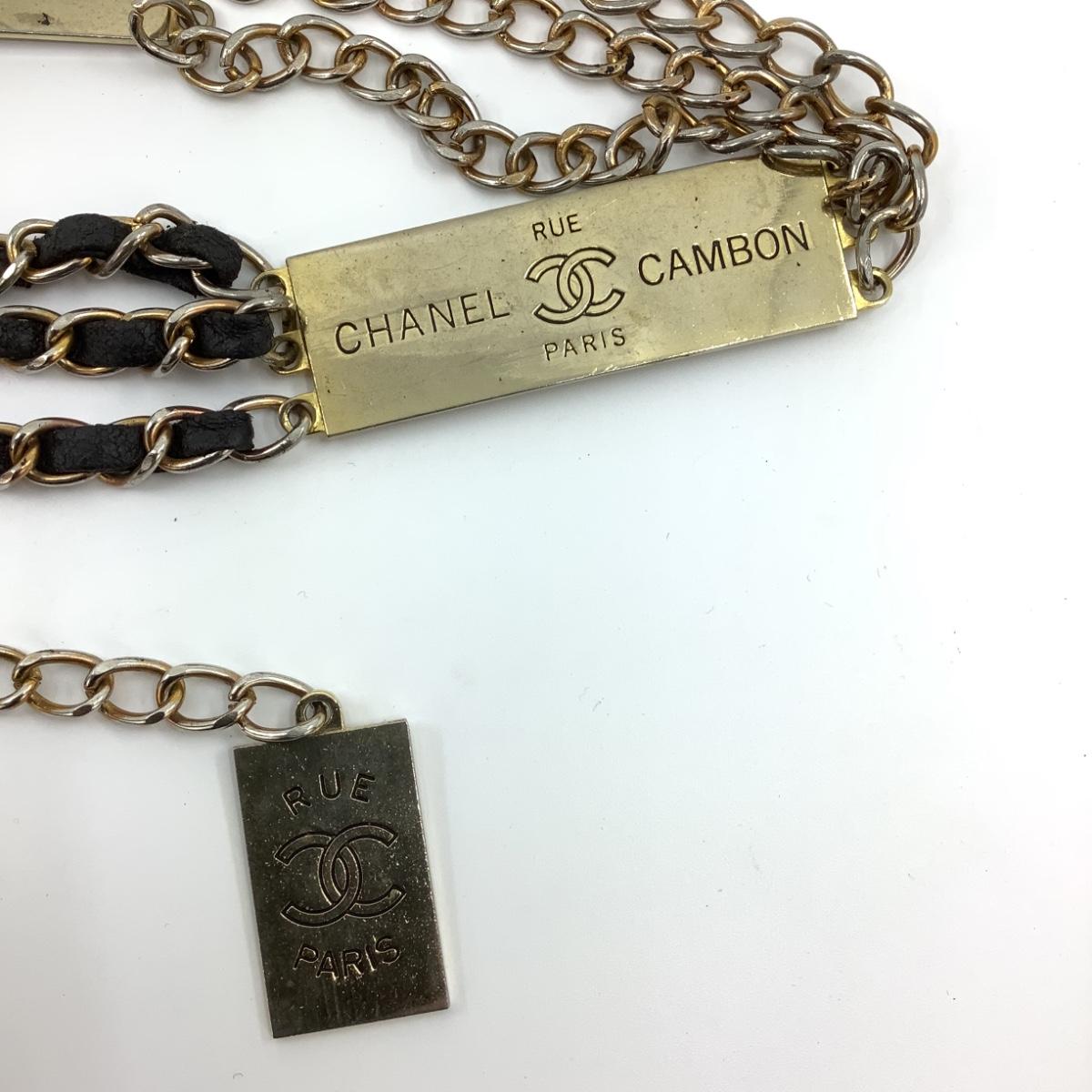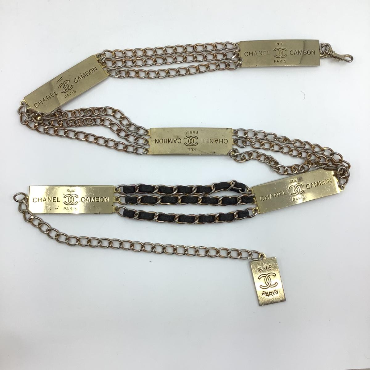 Vintage Chanel gold tone Rue Cambon chain belt, appears to have most of its leather missing from chain except for one section. Great addition to any classic chanel wardrobe.