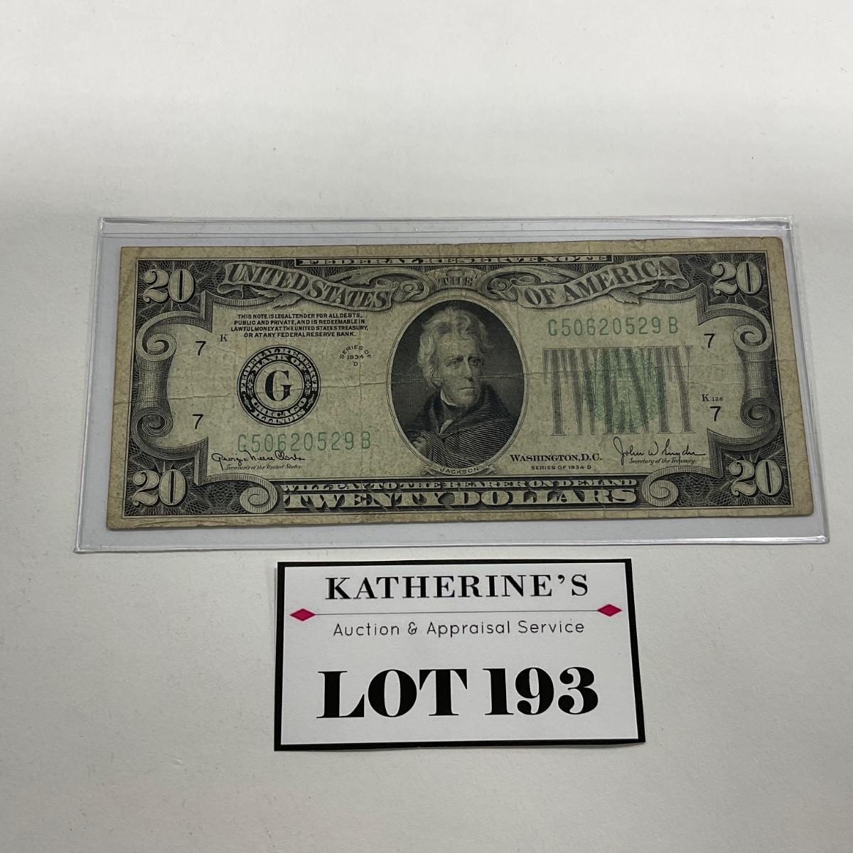 -193- CURRENCY | 1934D Federal Reserve Twenty Dollar Bill
