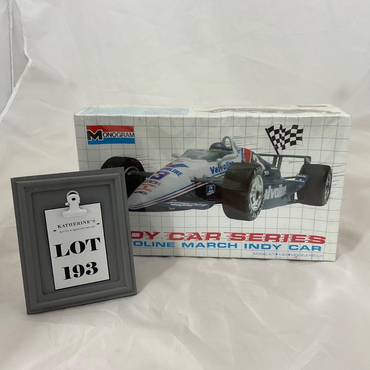 One 1:24 Scale Valvoline March Indy Car Model kit Sealed. Please see photos for details and condition. ::: Shipping is available on this lot. If you require shipping you must let us know at the close of the auction. We will coordinate with you after the item has been won. Shipping fees will include insurance up to or exceeding the value of all items being mailed. If you have any questions regarding this lot please contact the auctioneer either via this website, by direct email or by phone. PICK UP TIMES and other important information can be found in the TERMS and DESCRIPTION of the auction. Please take a look for pertinent information. Thanks!