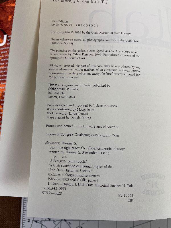 #193 UTAH The Right Place - Official Centennial History