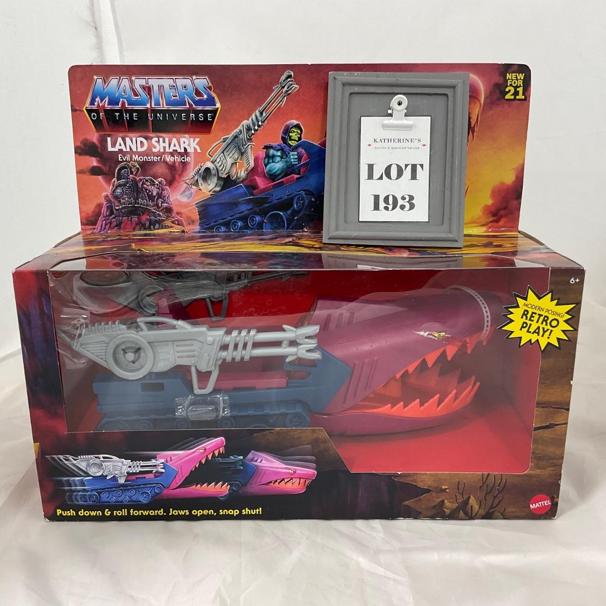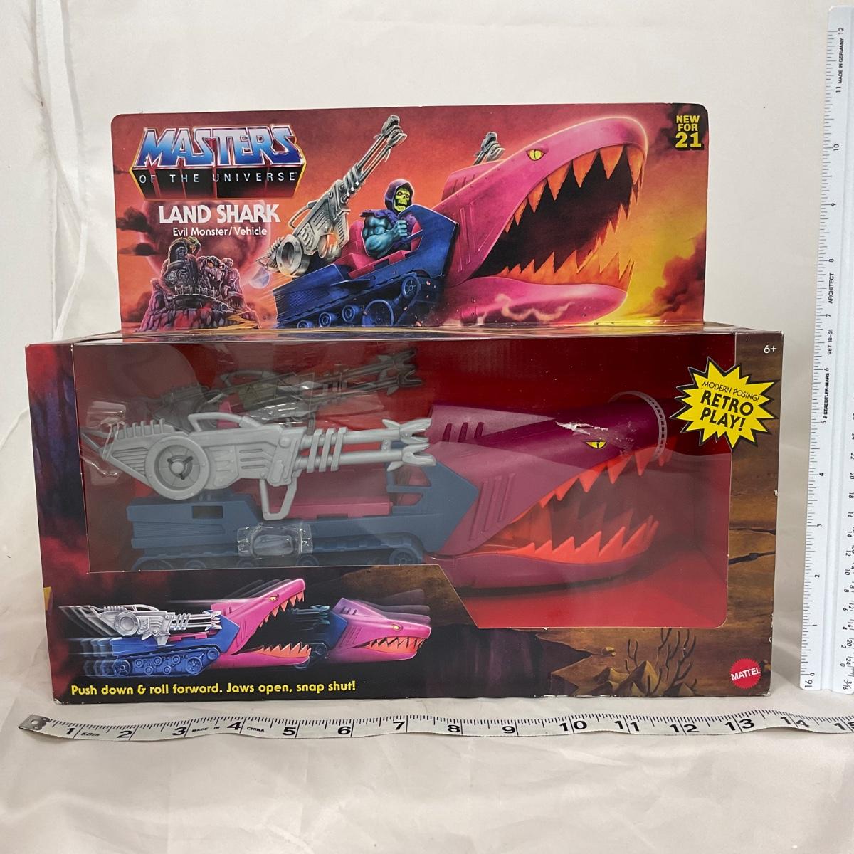 One Masters of the Universe Land Shark in box, reproduction collectible. Please see photos for details and condition. ::: Shipping is available on this lot. If you require shipping you must let us know at the close of the auction. We will coordinate with you after the item has been won. Shipping fees will include insurance up to or exceeding the value of all items being mailed. If you have any questions regarding this lot please contact the auctioneer either via this website, by direct email or by phone. PICK UP TIMES and other important information can be found in the TERMS and DESCRIPTION of the auction. Please take a look for pertinent information. Thanks!