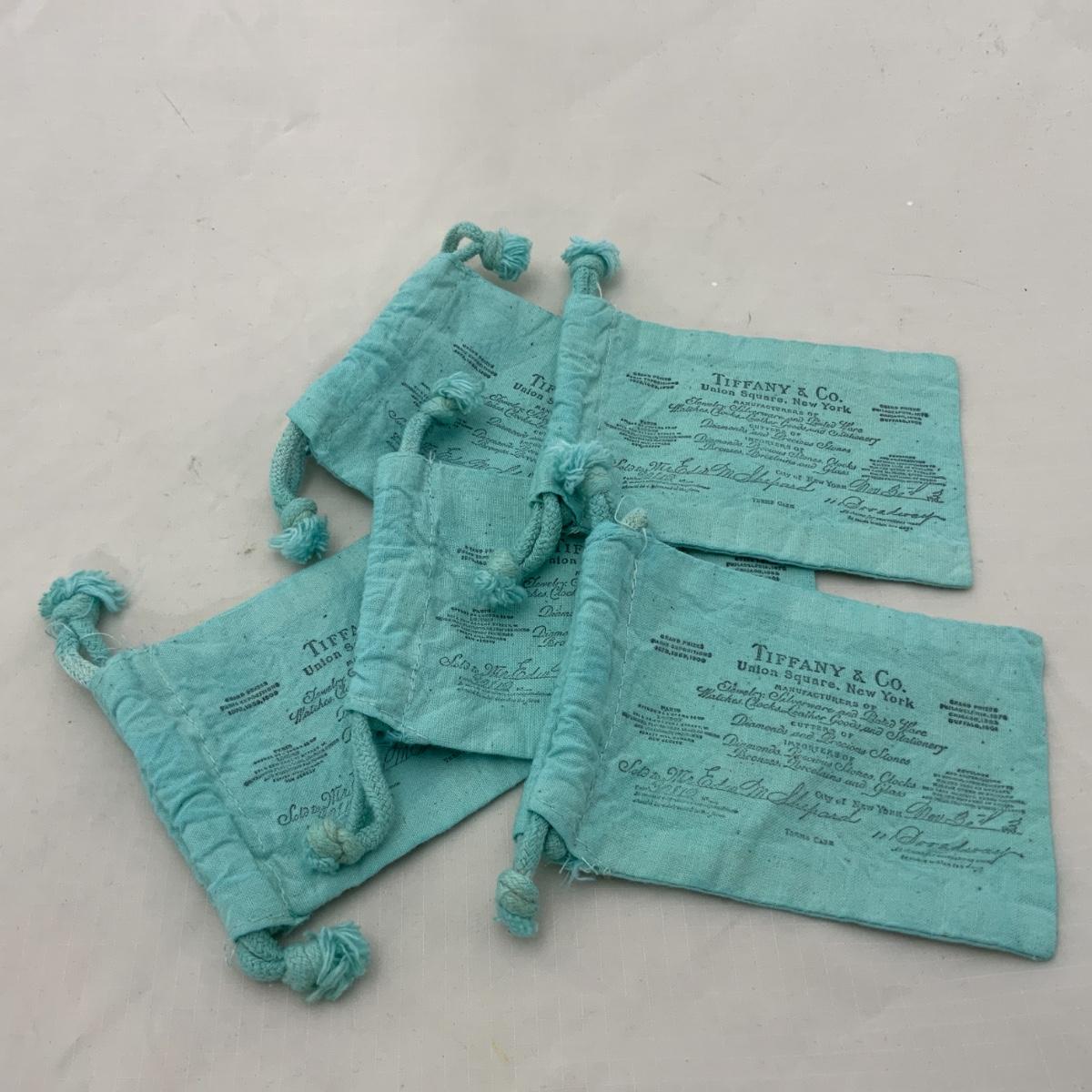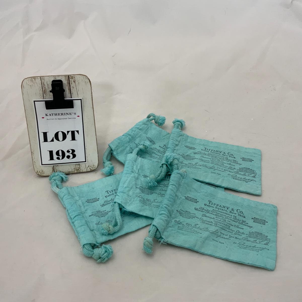From the Estate of Peter and Alice Radovanovich: Five vintage Tiffany and Co Jewelry Bags. Each measure 5x3.5 inches. Please see photos for details and condition. ::: Shipping is available on this lot. If you require shipping you must let us know at the close of the auction. We will coordinate with you after the item has been won. Shipping fees will include insurance up to or exceeding the value of all items being mailed. If you have any questions regarding this lot please contact the auctioneer either via this website, by direct email or by phone. PICK UP TIMES and other important information can be found in the TERMS and DESCRIPTION of the auction. Please take a look for pertinent information. Thanks!