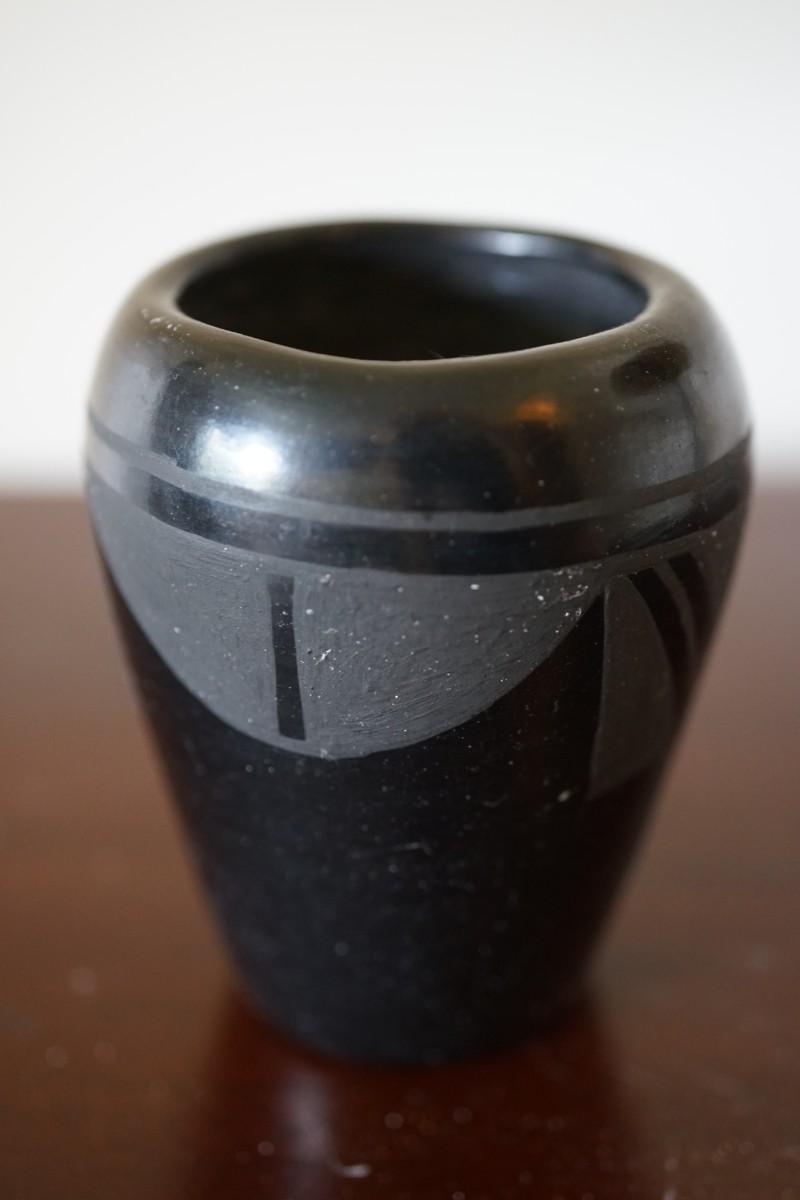 1930-40's 4" BLACK CLAY POT. NATIVE AMERICAN.-UNSIGNED.